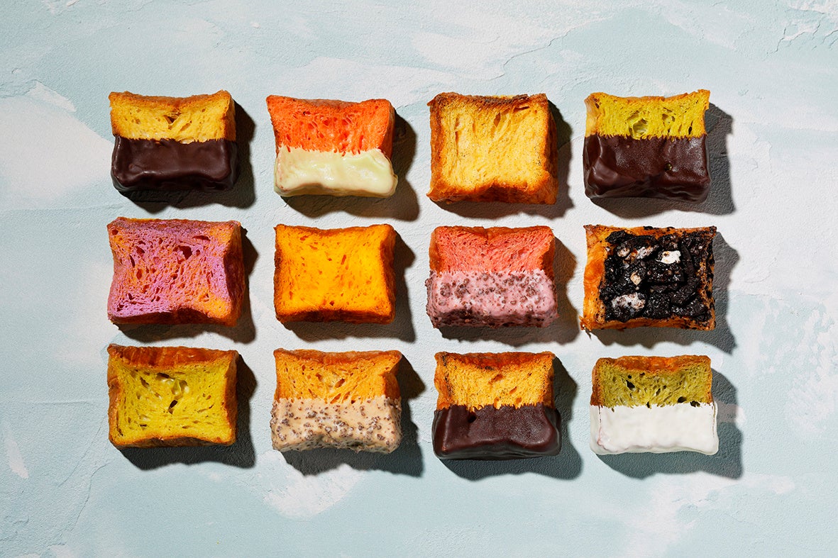 縦横10センチほどの小さなフレンチトーストは、見た目がカラフルでかわいく、常時11~12種類ございますので、様々なフレーバーをお楽しみいただけます!