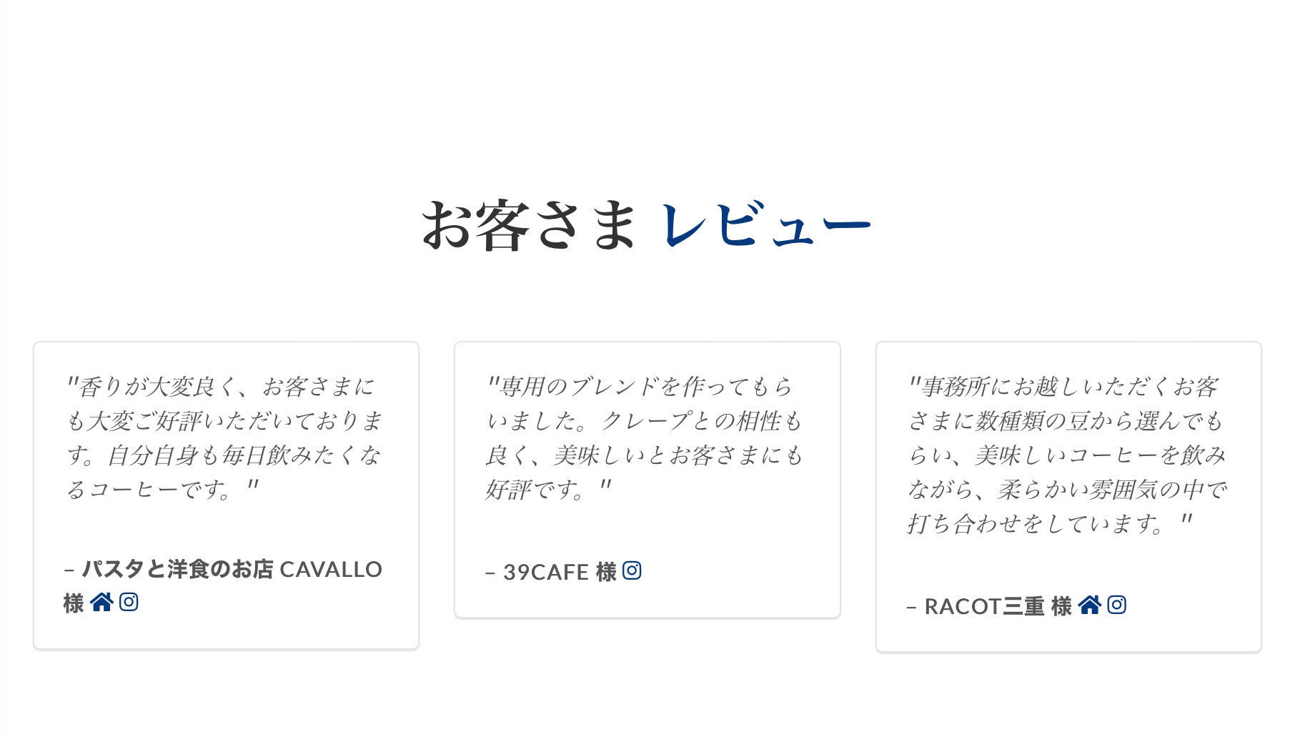 Cavallo様(イタリア料理店) 39cafe様(移動クレープ店) RACOT様(デザイン事務所)