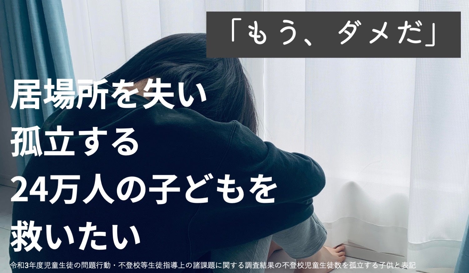 - 居場所を失い孤立する子どもは全国24万人。マンスリーファンディング実施の背景