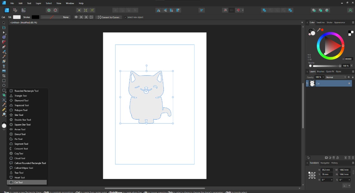 クリエイティブソフト「Affinity」を開発する、販売する英国Serif (Europe) Ltd.は、昨年11月に発売したデザインソフト“Affinity Version 2”で2月22日「猫の日」を合わせ、猫のイラストが出現する隠しコマンド「Cat Tool」を公開しました。