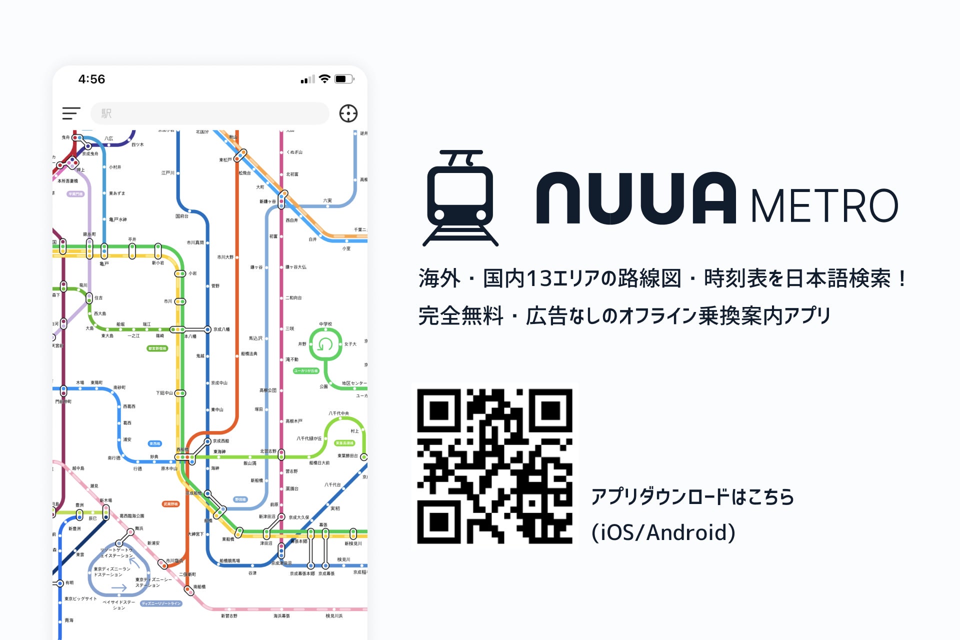 海外対応オフライン乗換案内アプリ「NUUA METRO」リリース | アジア13主要都市の路線図・時刻表を日本語で
