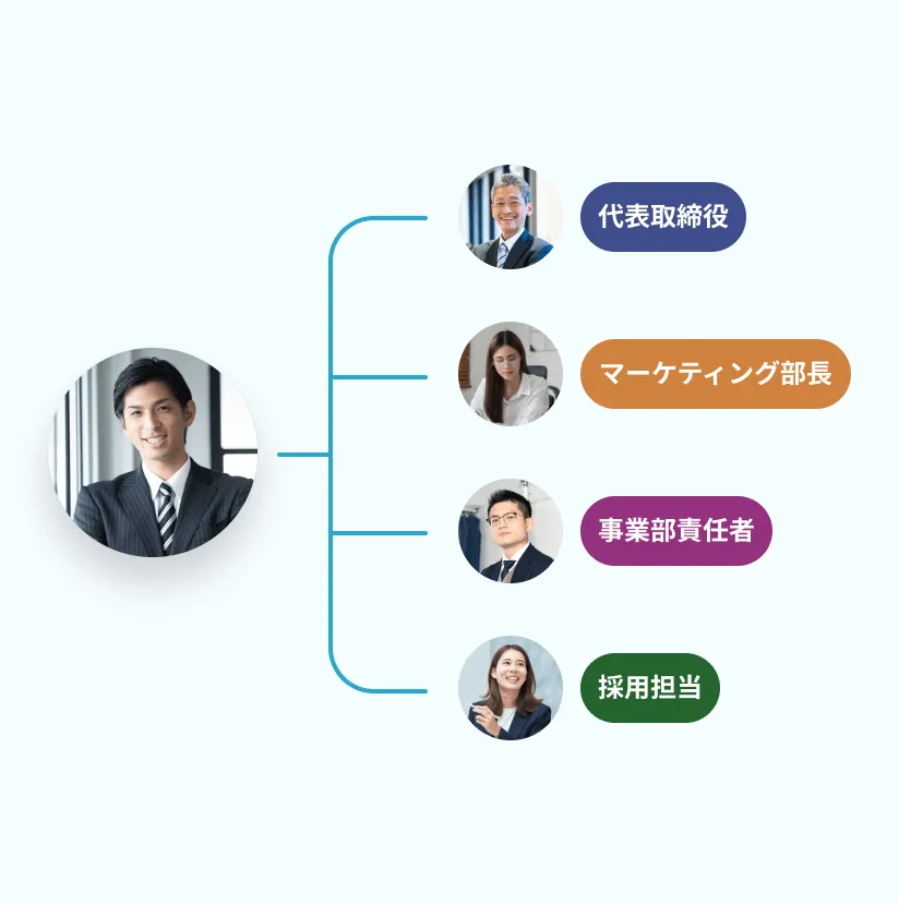 1企業1リードへのアプローチで終わらず、1企業複数リードへマルチにアプローチが可能。 商談を受けて頂いた担当レイヤーにて万が一、検討が止まってしまった場合、別のレイヤーへとアプローチすることで、提案の可能性が広がります。
