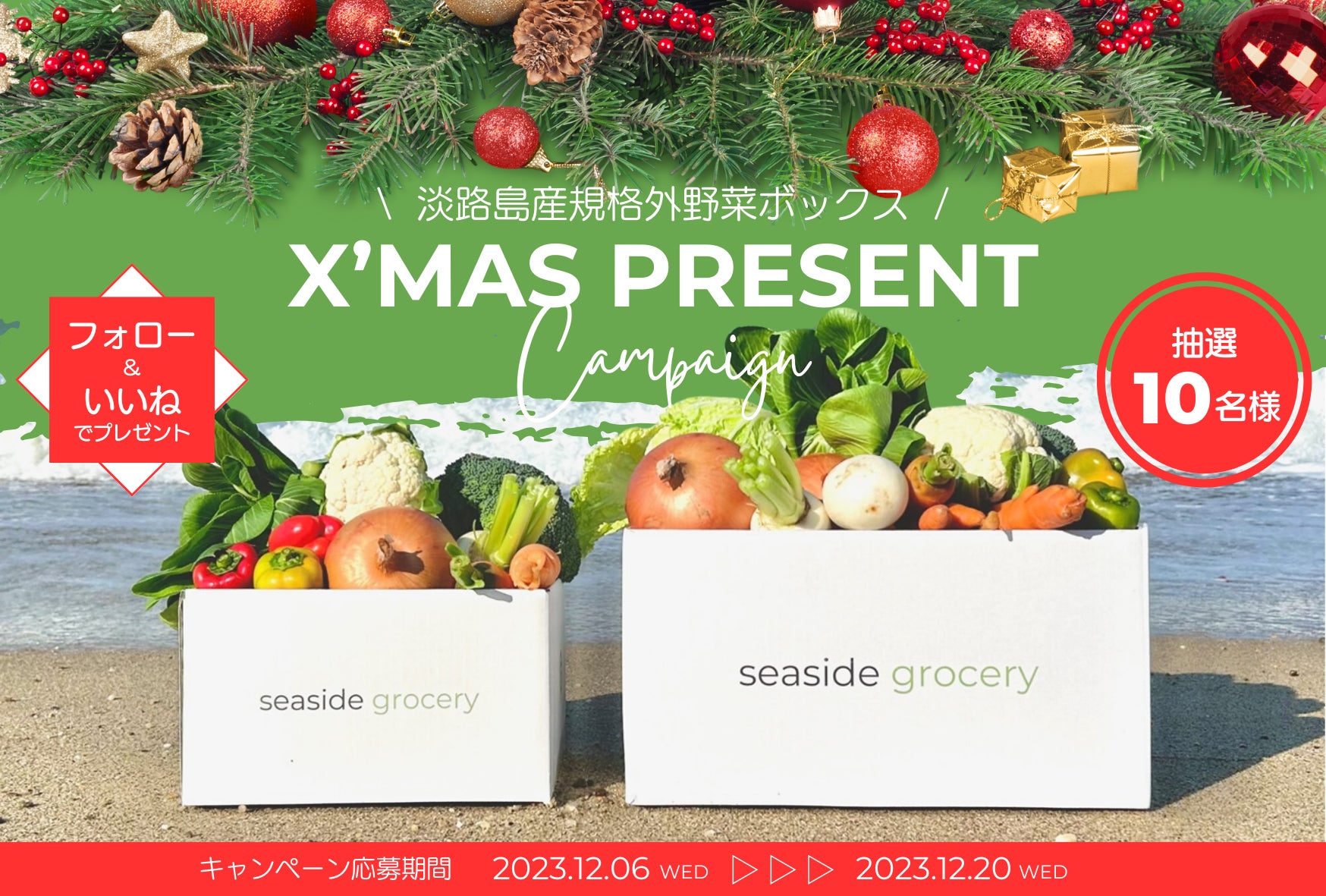 グランドオープンに伴い、抽選で計10名の方に淡路島産規格外野菜ボックスのクリスマスプレゼントを進呈!年末年始へ向け、規格外野菜を使ったお料理をお楽しみ下さい。