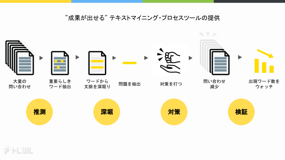 例えば、お問い合わせ内容を分析するツールを導入しようとしても、効果が分からない状態で会社の承認を得ることは難しいことです。こうした悩みを相談したところ、テキストマイニングの機能を無償で提供してもらえました。お試し感覚で利用できたので、管理者としてもリスクや負荷が少なくて助かりました。