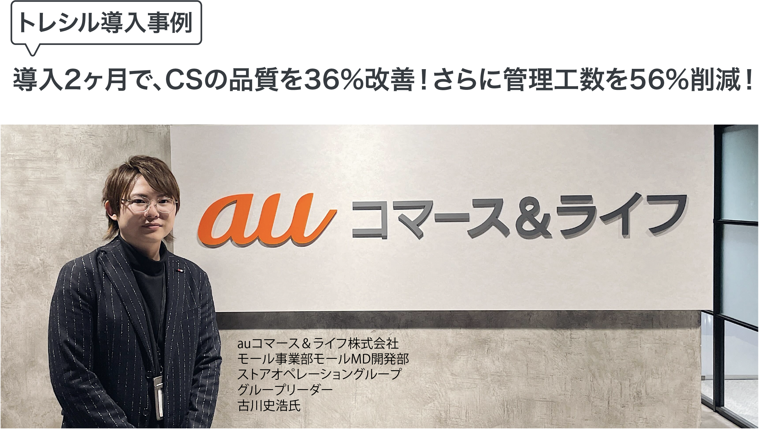 総合ショッピングサイト「au PAY マーケット」を運営するauコマース&ライフでは、店舗向けCSの応対品質向上を目指していた。最適な体制が見えにくいなか、業務の可視化を最優先としてトレシルを導入した。導入から2ヶ月でKPIは達成し、品質を36%向上させた。その成功要因についてのインタビュー。
