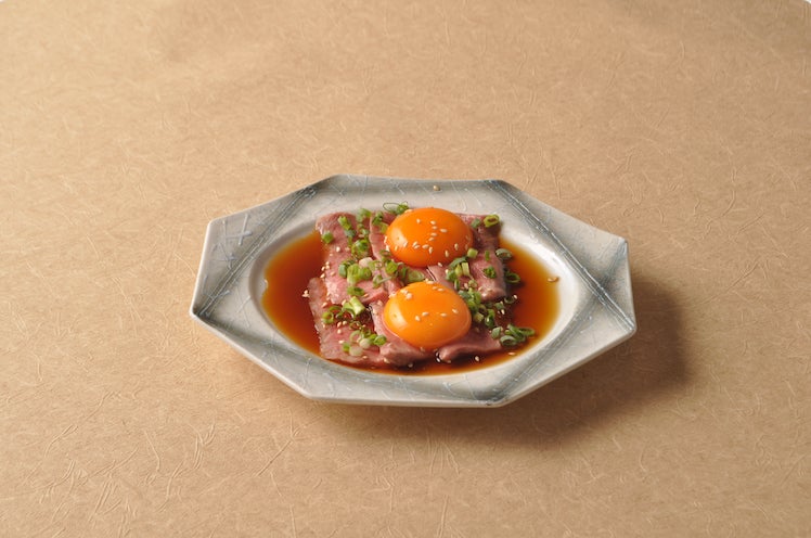 ・<新商品>ダブル卵黄飛騨牛ユッケ ¥980(税込)
