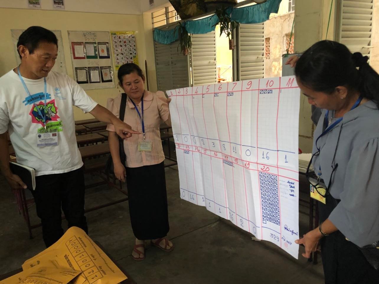 23日選挙当日はコンポントム州7箇所の学校で19の投票所を訪問しました。