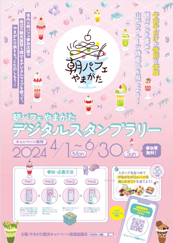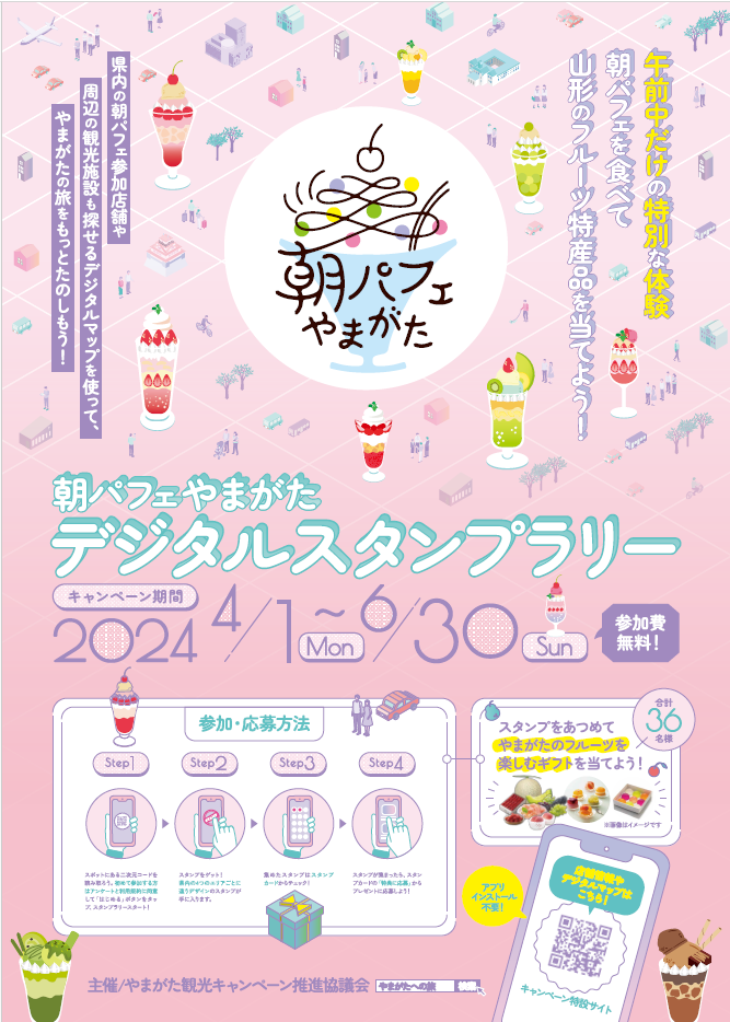 ① 「朝パフェやまがたデジタルスタンプラリー」(4/1~6/30)