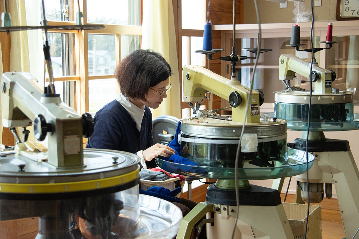 廃校校舎をリノベーションした、緑豊かなカシミヤニット工場