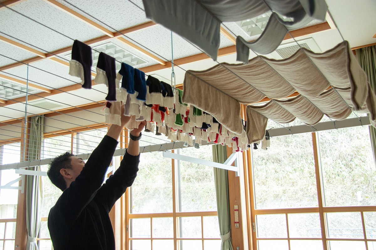アパレルブランド生産拠点の海外移転が相次ぐ中、当社は「北上市をカシミヤニットの聖地にしたい」という目標を掲げ、地元に親しまれてきた小学校の面影を守って地域とより一層連携してまいります。