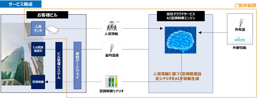 本サービスは、室温に最も影響を与える人流と外気温の変化をAIが分析することにより、室温の変化を未然に防ぐフィードフォワード型の空調コントロールを実現するものであり、東京ガス不動産管理物件における夏季期間(2023年8月~9月)のエネルギー削減効果の検証を行います。
