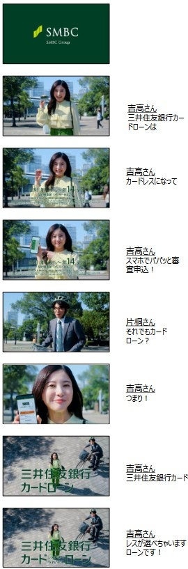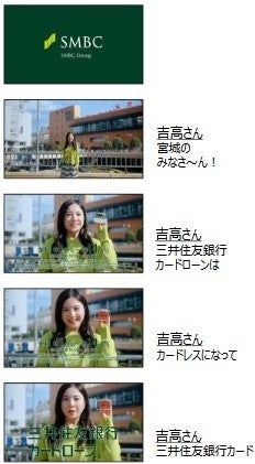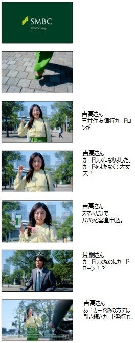 タイトル:新TVCM「三井住友銀行 カードレスが選べちゃいますローン」篇 (全国版:30秒×1タイプ/15秒×2タイプ、北海道版:15秒×1タイプ、宮城版:15秒×1タイプ、福岡版:15秒×1タイプ)