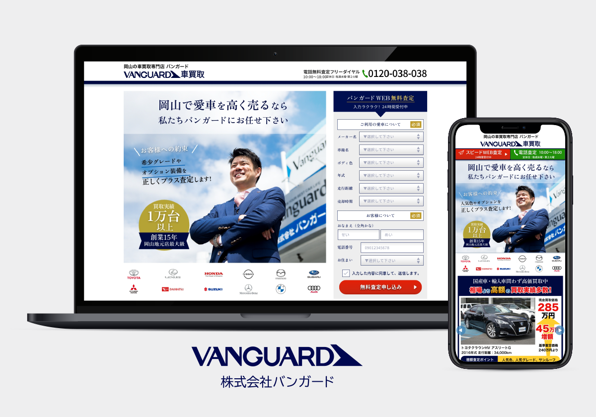 株式会社バンガードは15年前に開業した岡山県地域に特化した車買取販売専門企業です。買取実績も1万台と岡山ローカル企業としては最大級の実績を誇ります。そのバンガードがこの度「バンガード車買取オンラインサイト」をオープンします。このスマートフォンやパソコンで閲覧できるオンラインサイトでは実際の車買取実績例やスタッフの写真を用いバンガード車買取の高価買取の理由を解りやすく説明しています。申込のためのWEB入力フォームも車や所有者の情報を数分で入力でき、簡単に無料査定の依頼ができます。