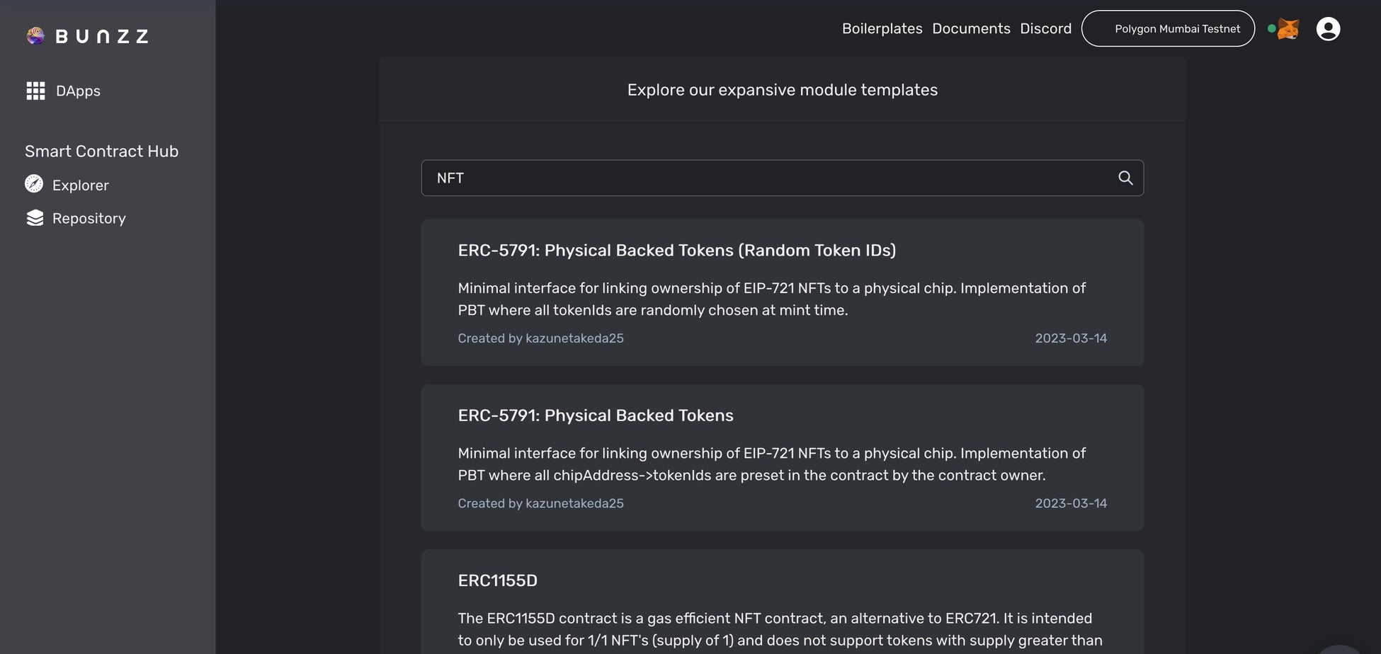 Bunzzでは、ユーザ自身が開発したコントラクトをモジュール化して公開できる「Smart Contract Hub」をリリースいたしました。
