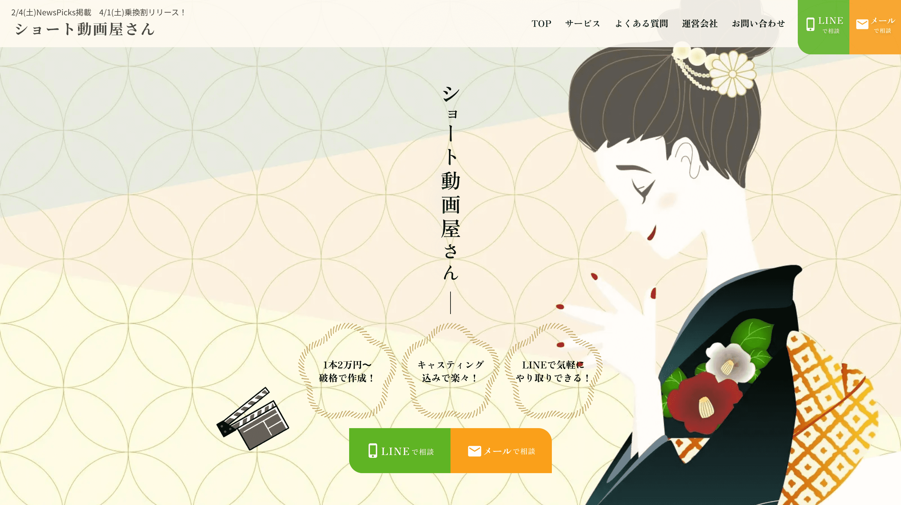 1本2万円のPR動画制作会社「ショート動画屋さん」と申します。