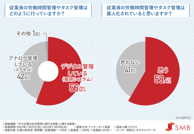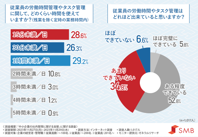 中小企業の経営者・管理職の方の4割以上が、従業員の労働時間やタスク管理ができていないことが明らかになりました。