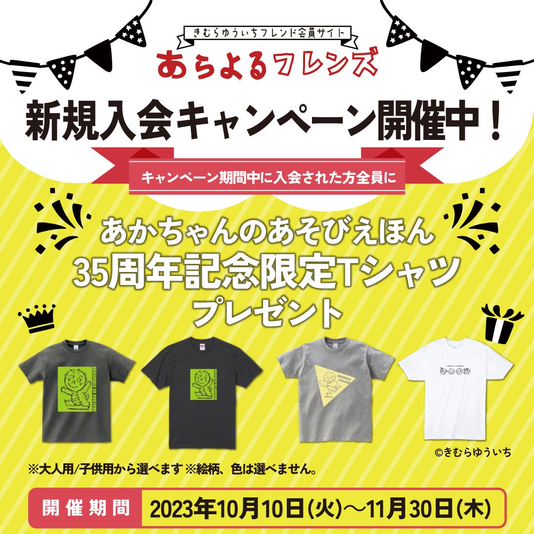 新規入会登録プレゼント(あかちゃんのあそびえほん35周年を記念した限定Tシャツを登録者全員にプレゼント※)※期間限定となります。※新規入会キャンペーン対象条件:6か月継続