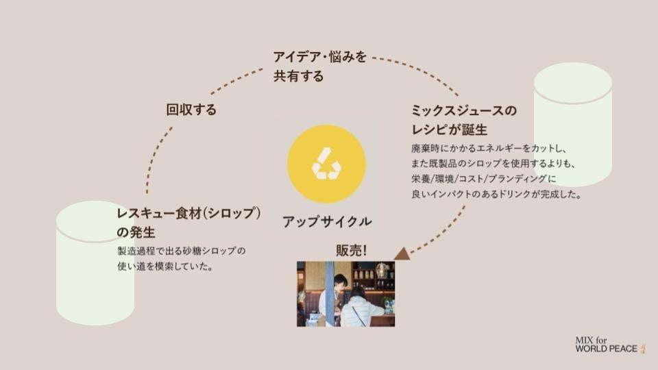 「SHUKA」では製造工程で副産物として発生するシロップの活用方法を模索していました。「CORNER MIX」は、シロップが副産物として発生しているということと、ストーリーに着目し、レシピ開発に至りました。