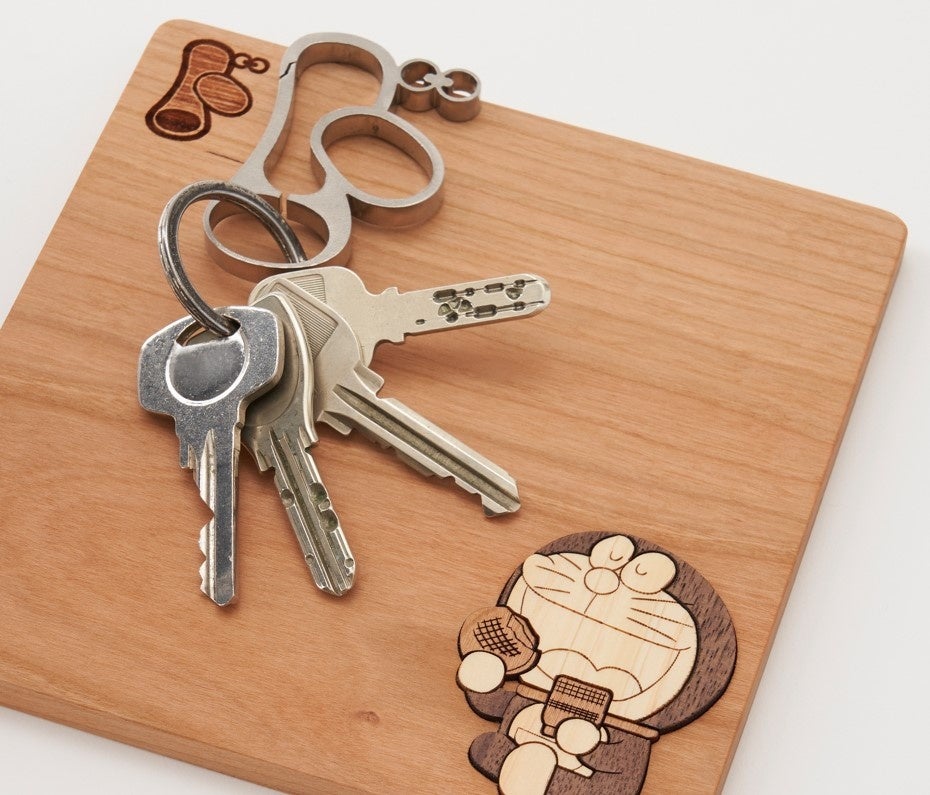一点一点手作業で、木のパーツを組み合わせた木象嵌(もくぞうがん)で仕上げたドラえもんがナチュラルな空間によく似合います。