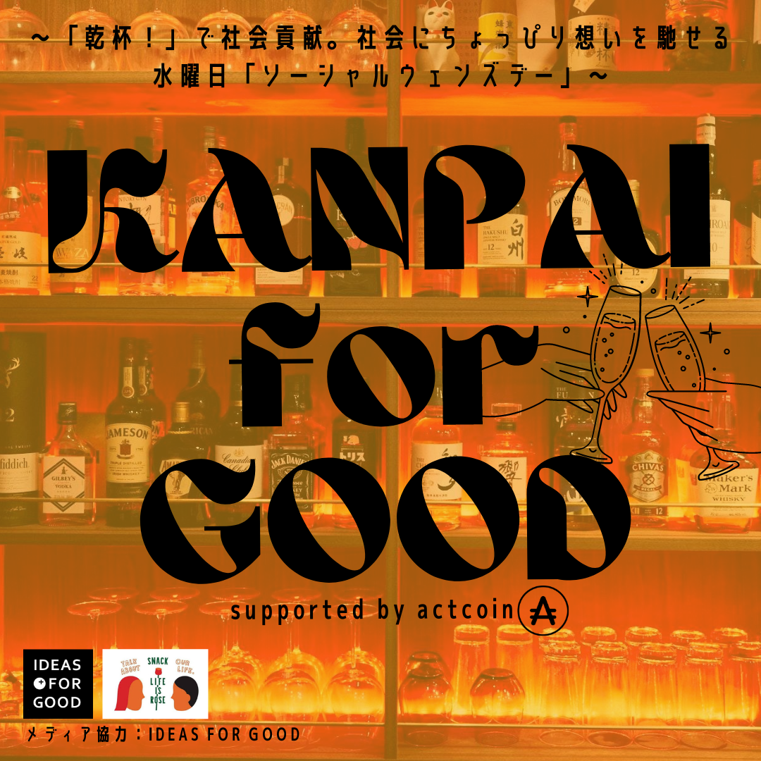 actcoinを通じて今まで様々な団体の活動への想いを聞かせてもらいました。取り組む社会課題は様々ですが、誰もが活動のきっかけとなるストーリーを持っています。KANPAI for GOODはそんな熱い想いとストーリーにも触れることができる場所になると思います。そしてここからまた誰かの新しいストーリーがうまれることを期待しています!