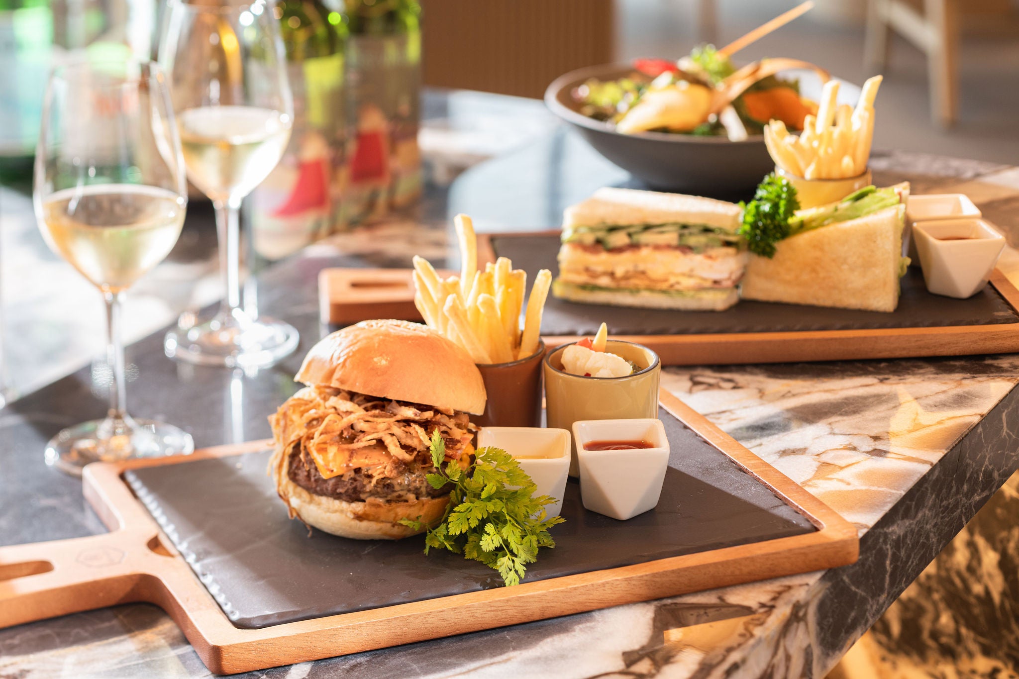 宮古味噌を使用したシグネチャートゥリバーガー(プレーン) 2,800円、アメリカンクラブサンドイッチ 2,200円、