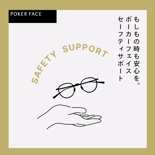 気に入ったメガネ、サングラスを安心して長くお使いいただきたい。そんな思いからポーカーフェイスではお客様のメガネライフをサポートする保証サービス、「SAFETY SUPPORT(セーフティサポート)」をスタートいたします。
