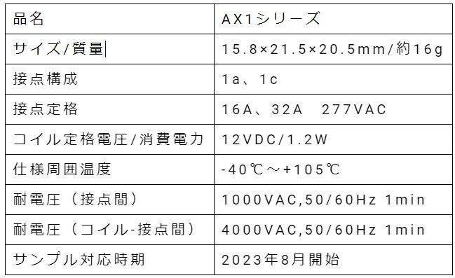 車載充電器用ACリレー「AX1」のサンプル提供開始
