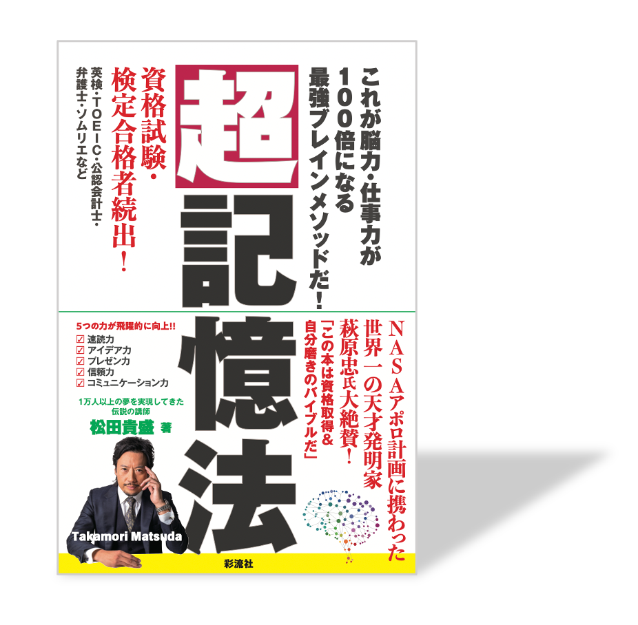 子どもから大人まで全世代の共育(教育)事業を手がける株式会社エブリオン(本社:千葉市、社長:松田 貴盛)が運営する「英語進学塾リオン」で〝カリスマ塾長〟と呼ばれる松田貴盛の新刊『超記憶法』(彩流社)が2022年12月20日(火)、Amazonマーケットプレイスにて販売開始となりました。発売後、一時Amazonの売れ筋ランキングで1位(生涯教育カテゴリ)となり、話題沸騰中です。