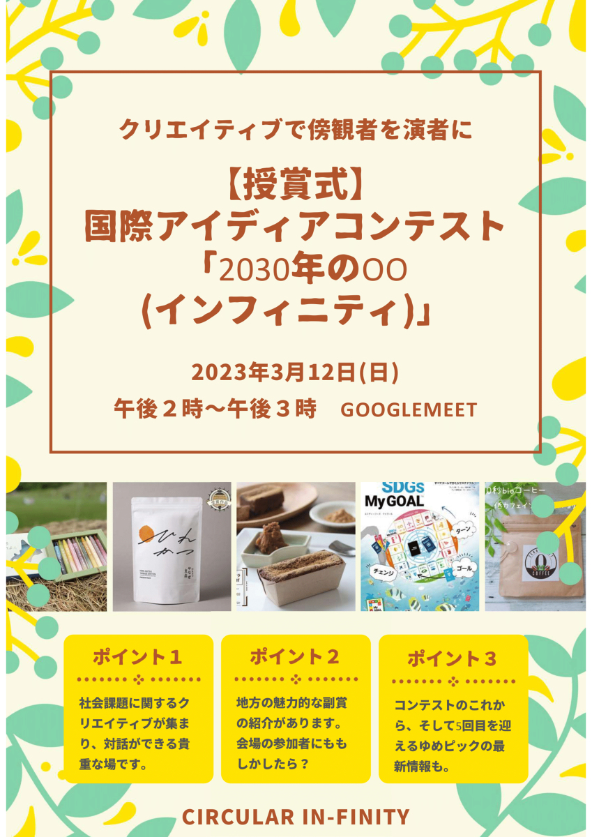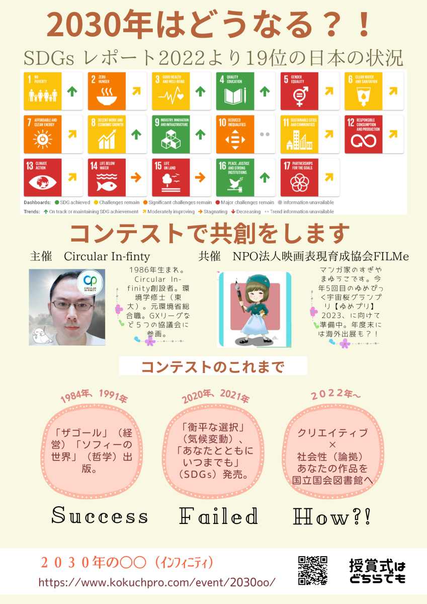 事業ローンチのクラウドファンディングで、100人以上の支援者によって約8割の成果を得た、特定非営利活動法人SDGsHelloWork(所在地:東京都千代田区、代表理事:岸本貴久)が協力に名前を連ねている、国際アイディアコンテスト「2030年の〇〇(インフィニティ)」は、「日本・インド環境ウィーク」や「JICAクリーンシティイニシアティブ」にオンライン出展し、日本とマダガスカルをつないだラジオ「RADIO MIRAI」にて紹介された。脱炭素に関する国民運動として、このように広範な国際発信を行ったことは初めてである。