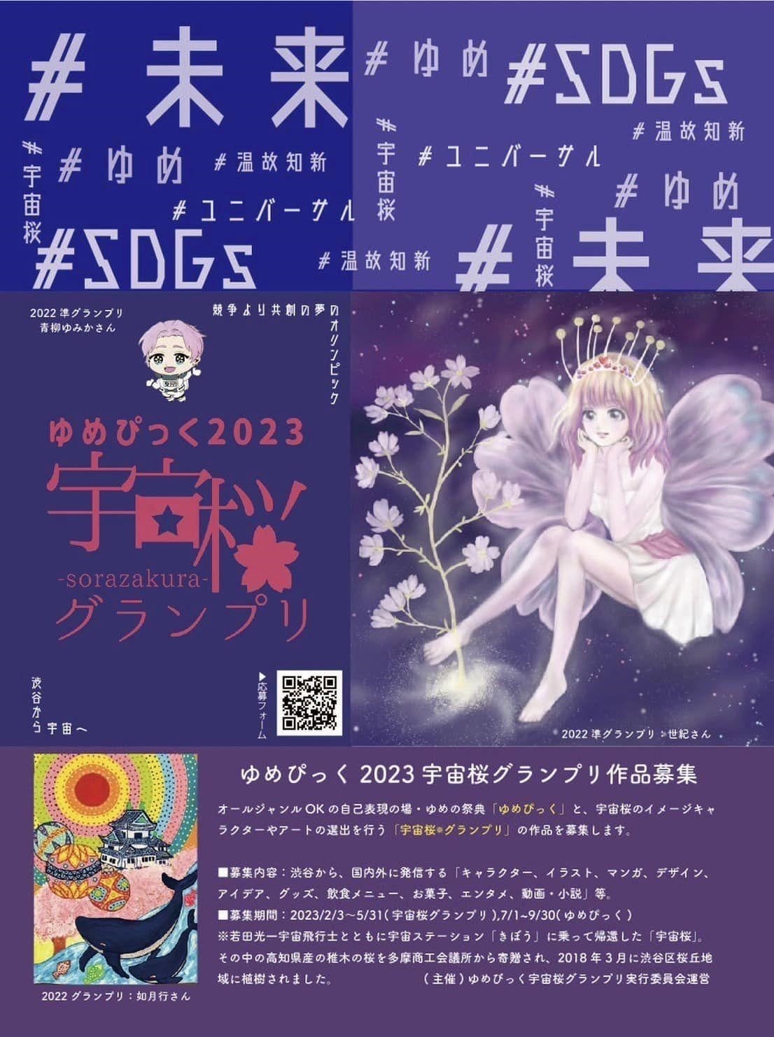 応募締め切りは2月18日と1週間延長することで、外国人からの応募を取り入れる。3月12日の授賞式は、共催のすぎやまゆうこが「World Art in Dubai 2023」に現地出展するため、日本とドバイをつないだ形式も検討中である。彼女が主催メンバーに加わっている、「ゆめぴっく・宇宙桜グランプリ2023」は、連続テレビ小説『らんまん』のモデルである植物学者が発見した「稚木の桜」(渋谷の宇宙桜)がテーマの1つであり、日本・世界・宇宙と彼女の目標であるユニバーサルスクールにつながっている。授賞式の進行には、昨年「Youth UNHCR みんなの未来そうぞうコンペ 」を成功させたYouth UNHCR代表の金澤伶が加わる。