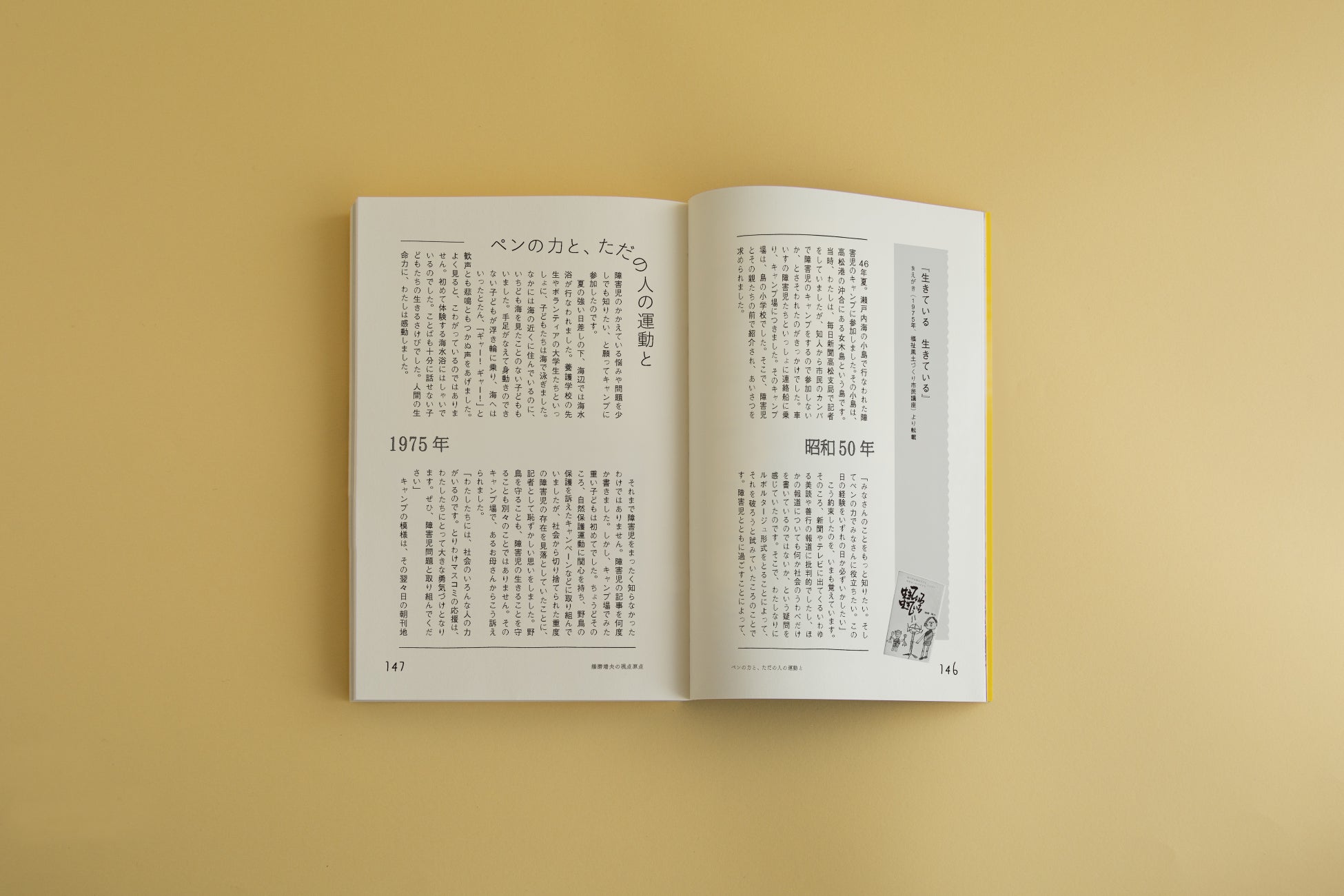 第3章には、「播磨靖夫の視点原点」として、のちの「エイブル・アート・ムーブメント」に展開していく、播磨さんの視点や活動の原点を感じる原稿を再録。1975年に書かれた書籍の序文、長年編集長を務めた雑誌『グラスルーツ』(発行:JYVA[社団法人日本青年奉仕協会])への寄稿など5本の原稿を収録しました。