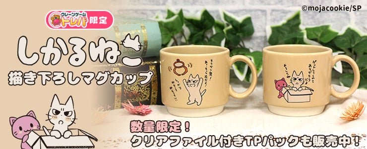 “叱られているのに癒やされる” ことで人気な猫キャラクター、「しかるねこ」のトレバ限定プライズ「【トレバ限定】しかるねこ 描き下ろしマグカップ(全2種)」(高さ約7.5cm × 幅約8.5cm)が、2023年6月22日(木)15:00より登場します。