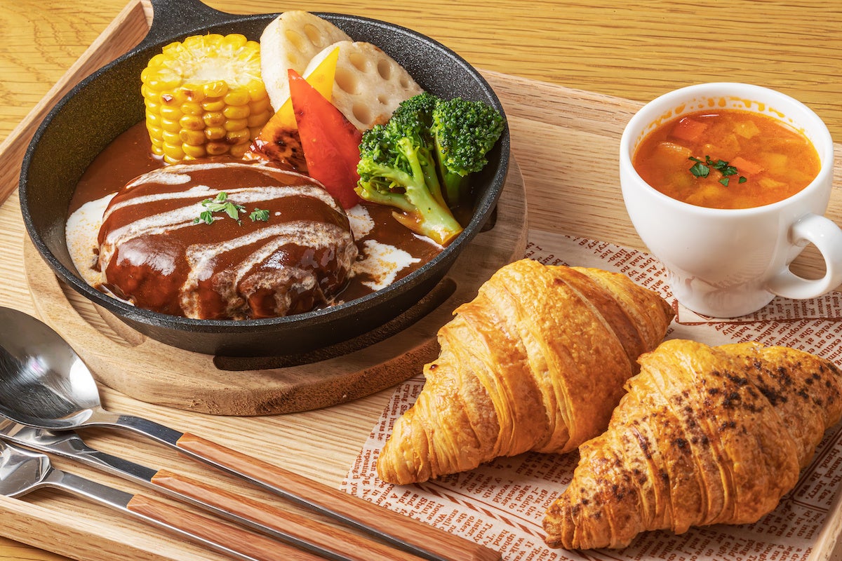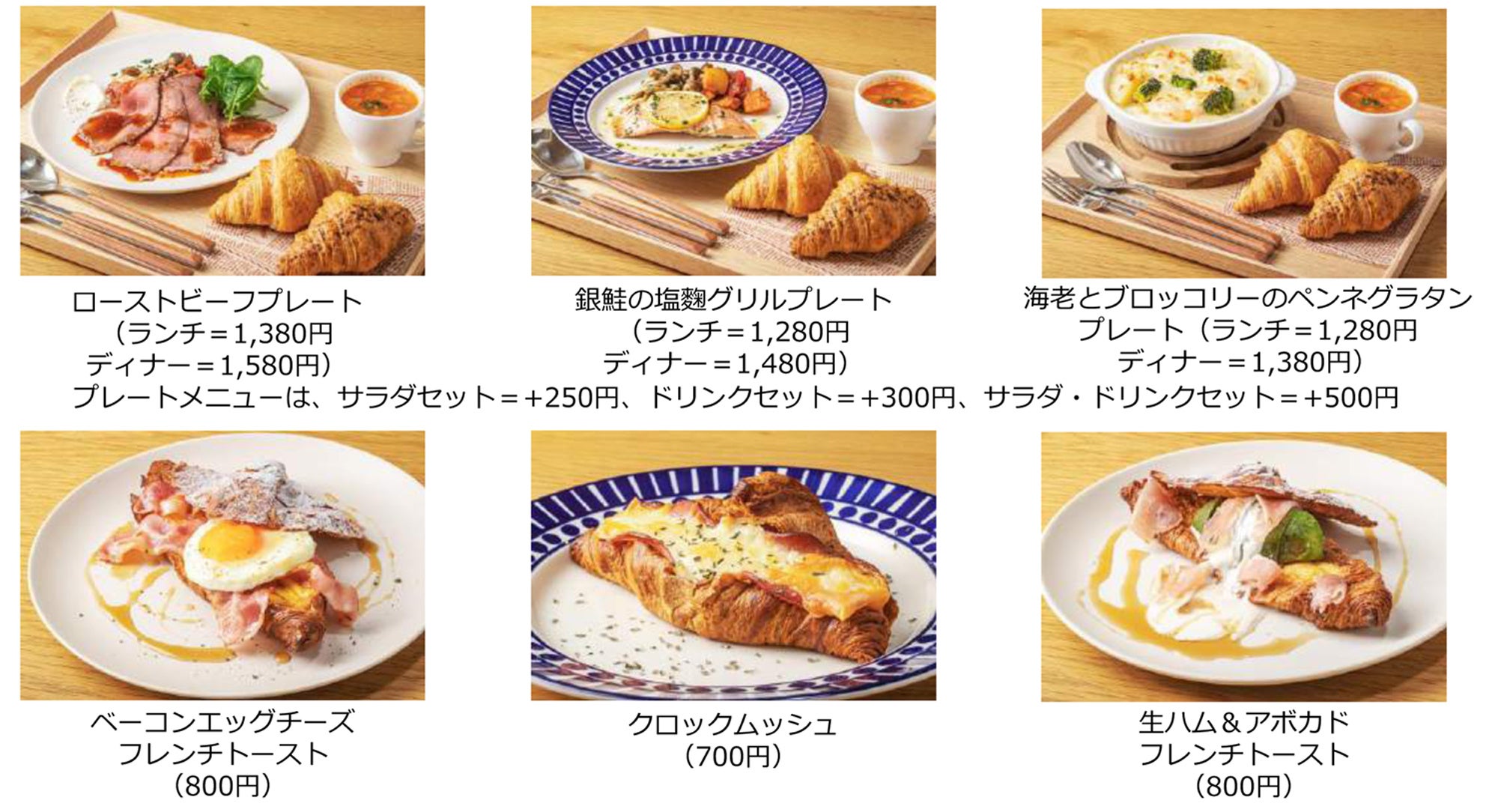 フードメニューは、リッツカールトン出身のフレンチシェフが、「ローストビーフ」「煮込みハンバーグ」「ペンネグラタン」などクロワッサンに合う洋食を考案。