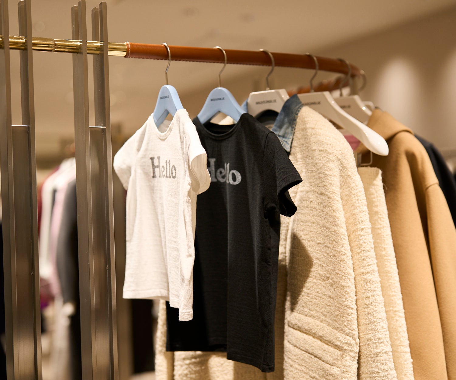 ブランドの世界観をコンパクトに表現した店内には、ブランドの核となるエッセンシャルコレクション、シーズンコレクションの洋服や小物をラインナップ。
