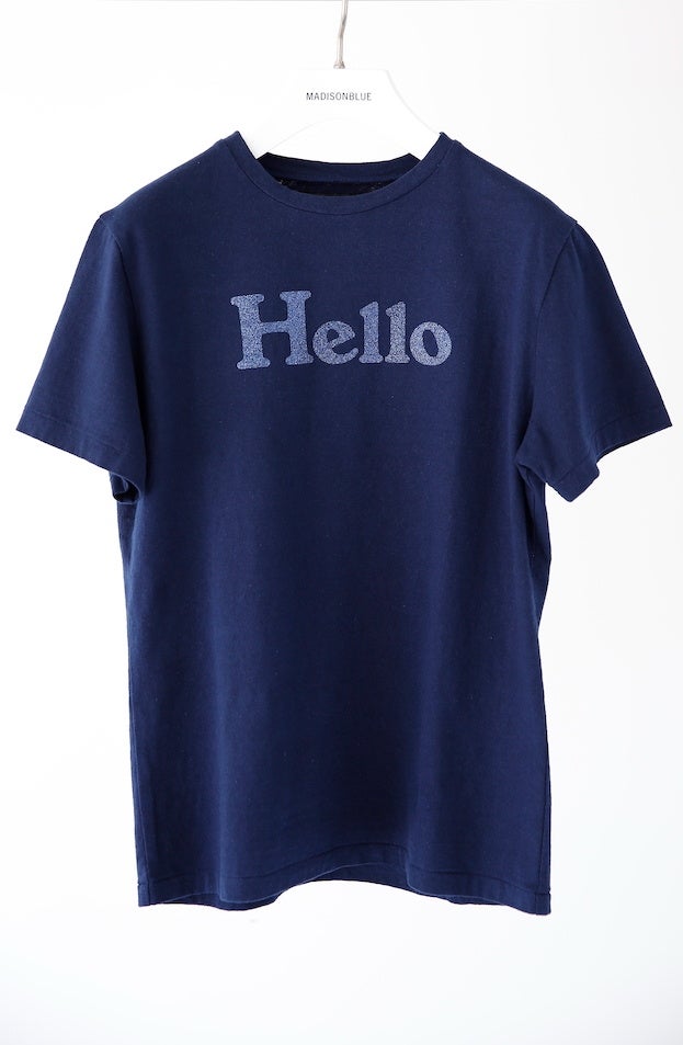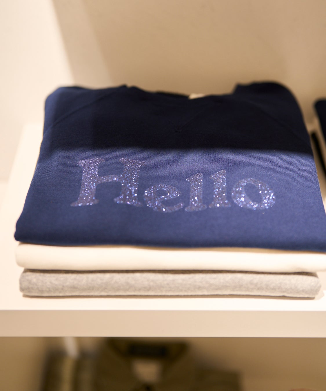 オープンを記念し、ブランドのアイコンアイテムのひとつであるHELLO TシャツとHELLOスウェットの伊勢丹新宿店限定商品を発売。ネイビーカラーに「HELLO」のメッセージをネイビーラメで配した、大人のカジュアルスタイルにマッチする一着です。