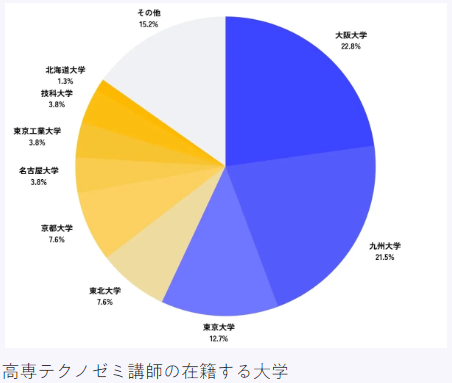 OLIENT TECH株式会社が運営する、高専専門オンライン学習塾「高専テクノゼミ」は、全国58高専中52高専の現役学生の指導実績を誇り、高専在学生の指導では国内最大指導実績を有しています。およそ100名の高専卒旧帝大生をはじめとする講師が、就職を希望する学生が多い定期試験対策コースの学生から、大学進学を目指す大学編入対策コースまで幅広く指導を行い、高専卒業生の視点から高専教育をサポートしています。