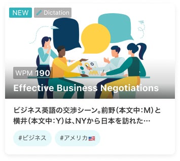 今回『シャドテン』に新しく搭載された教材は、「Global Business Communication」「Effective Business Meetings」「Effective Business Negotiations」「Practical Business English」の4教材です。初中級から上級まで広範なレベルのお客様を対象に、電話会議や出張の場などですぐに使える身近なビジネス英語のリアルな会話形式をベースにしています。