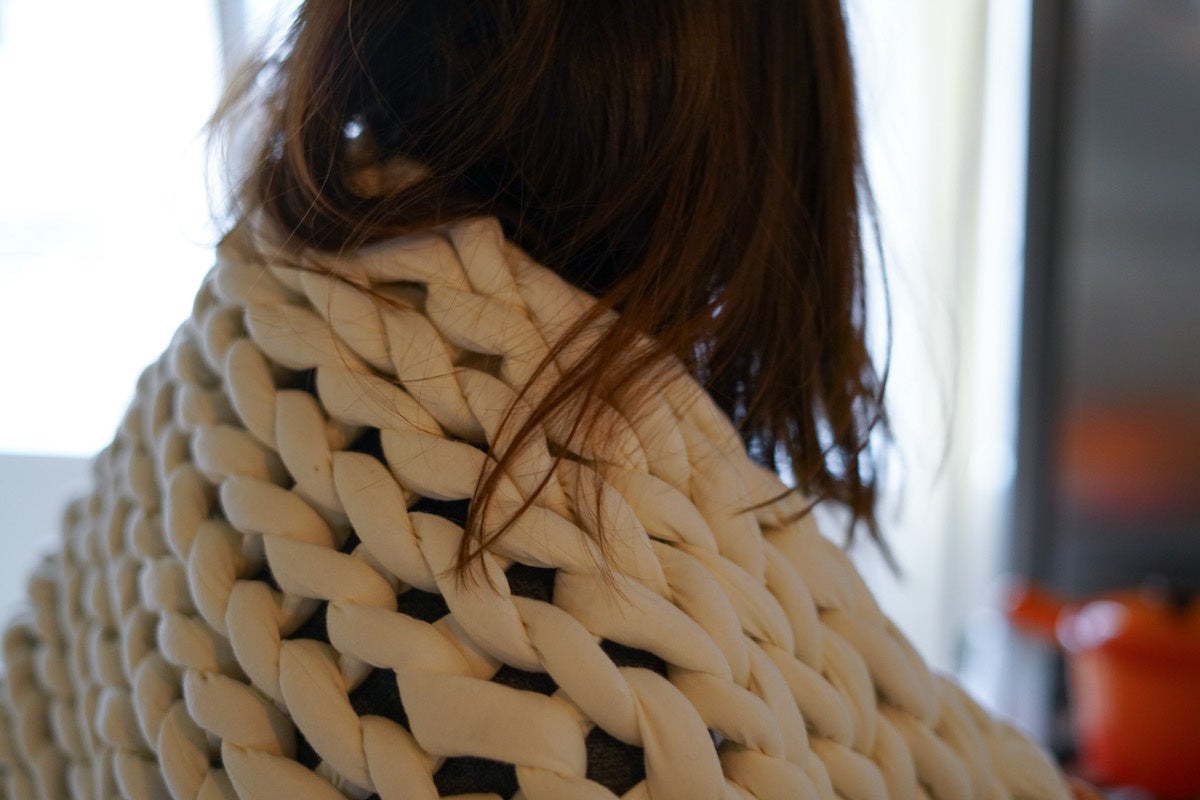 身体に適度な圧力をかけるようにつくられた重みのあるブランケットです。