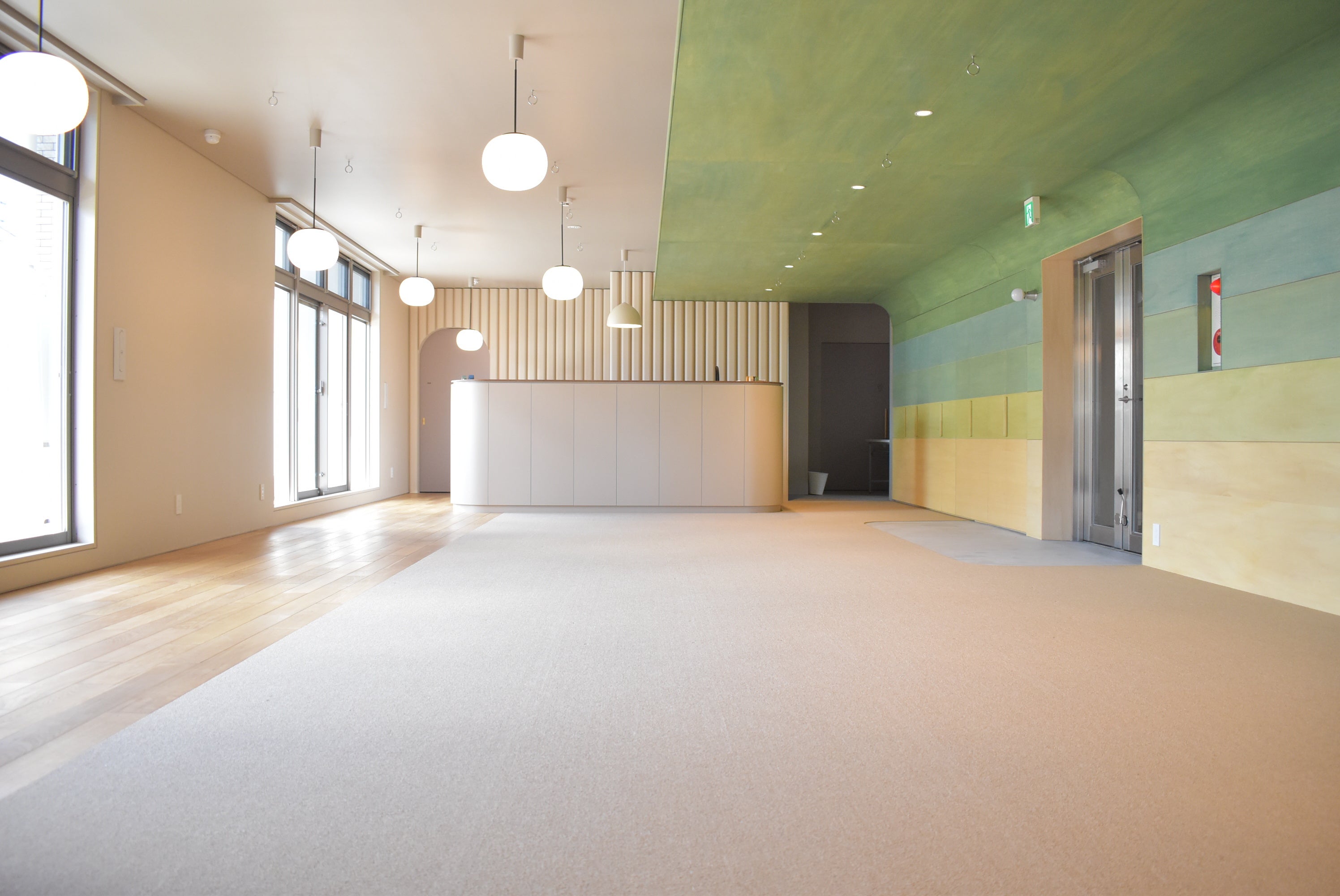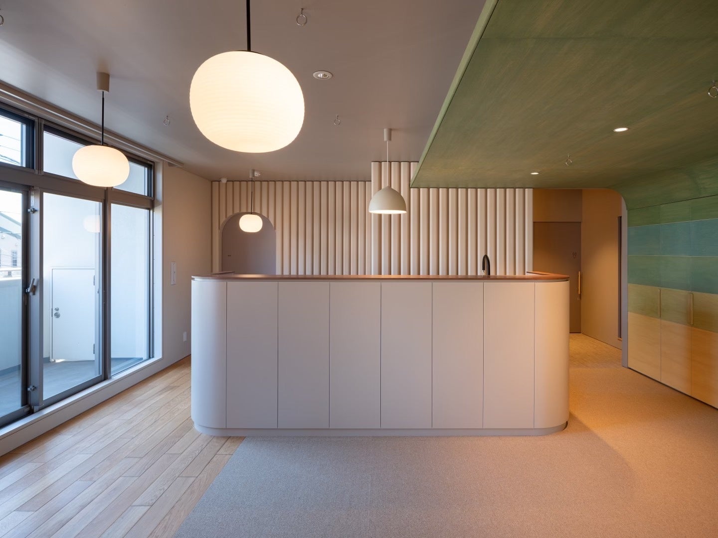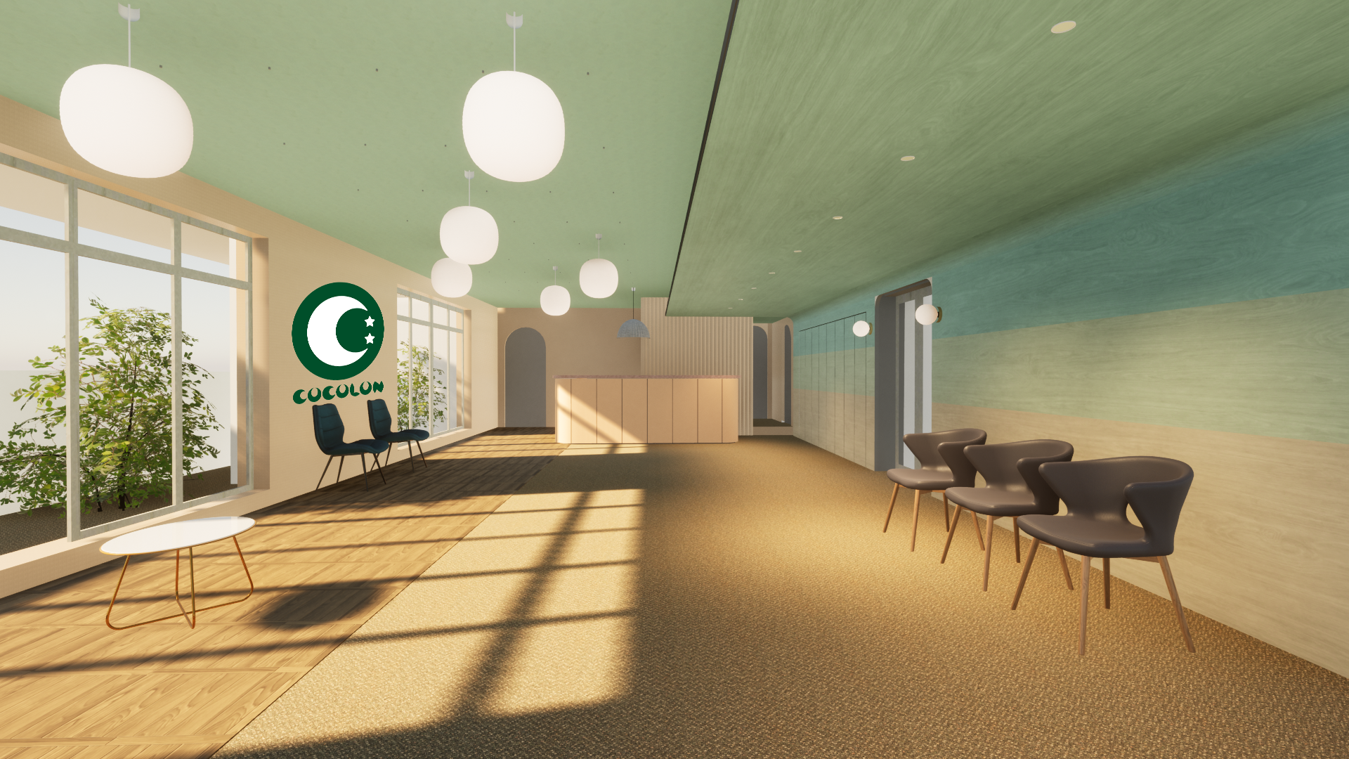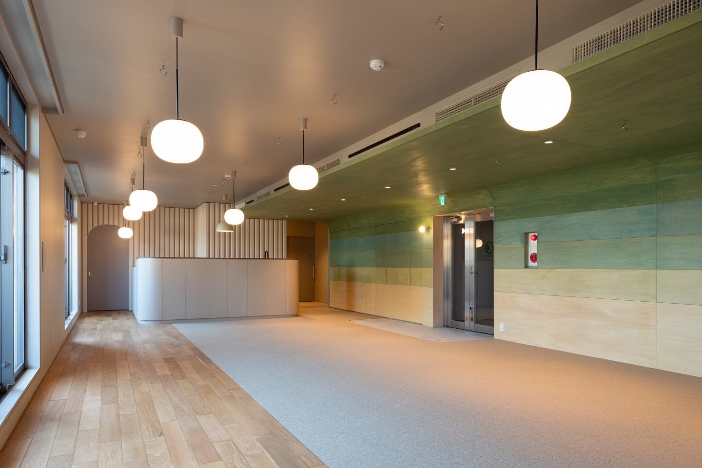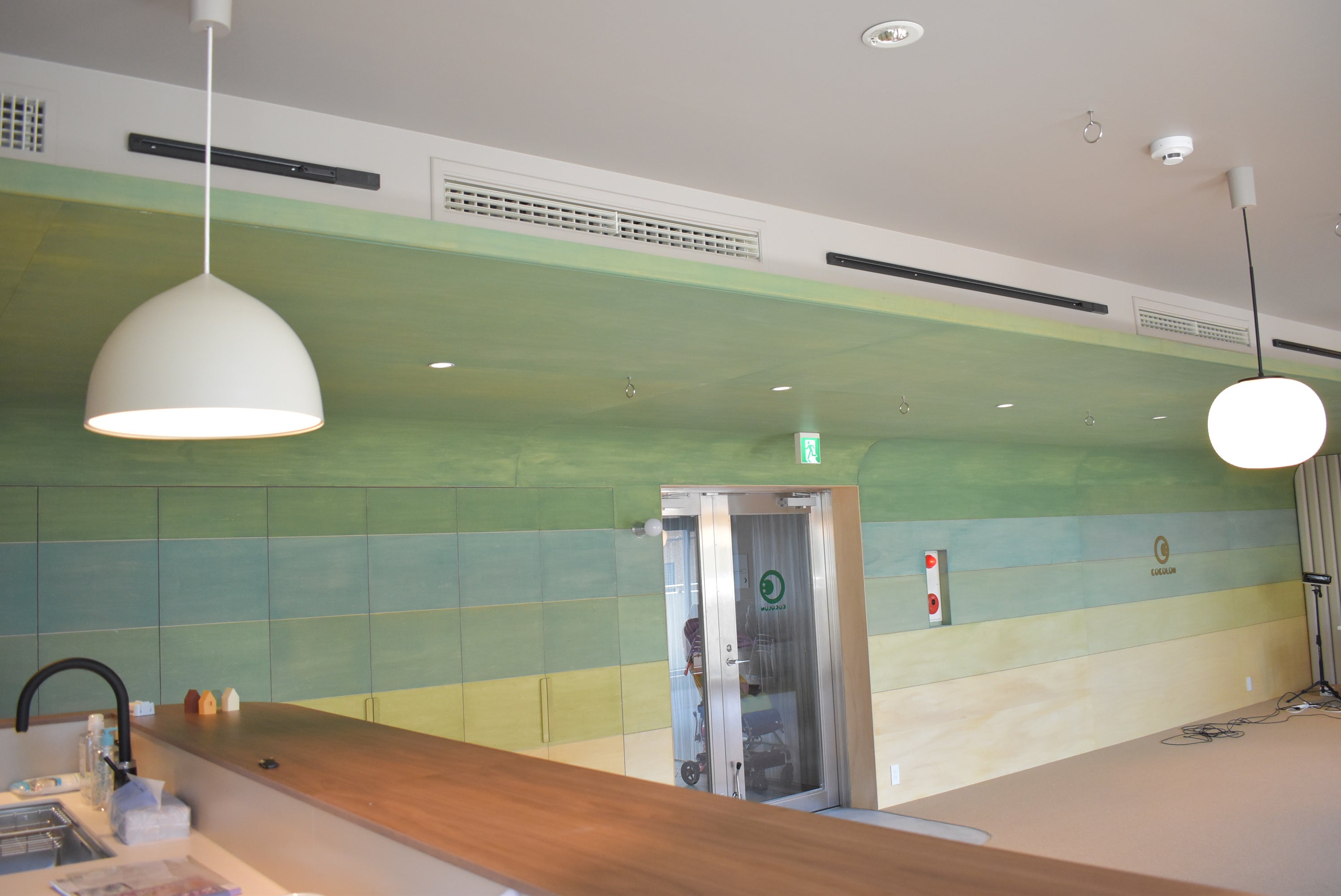 特定非営利活動法人EPOが運営する重症心身障がい児の児童発達支援施設「ここね」の活動や理念を軸として、コンセプトを「ここねの森」とした内装は木材を多く使い、木漏れ日を浴びながら明るい森の中にいるような、仲間と過ごすコミュニティのフラッグシップにふさわしい空間になりました。