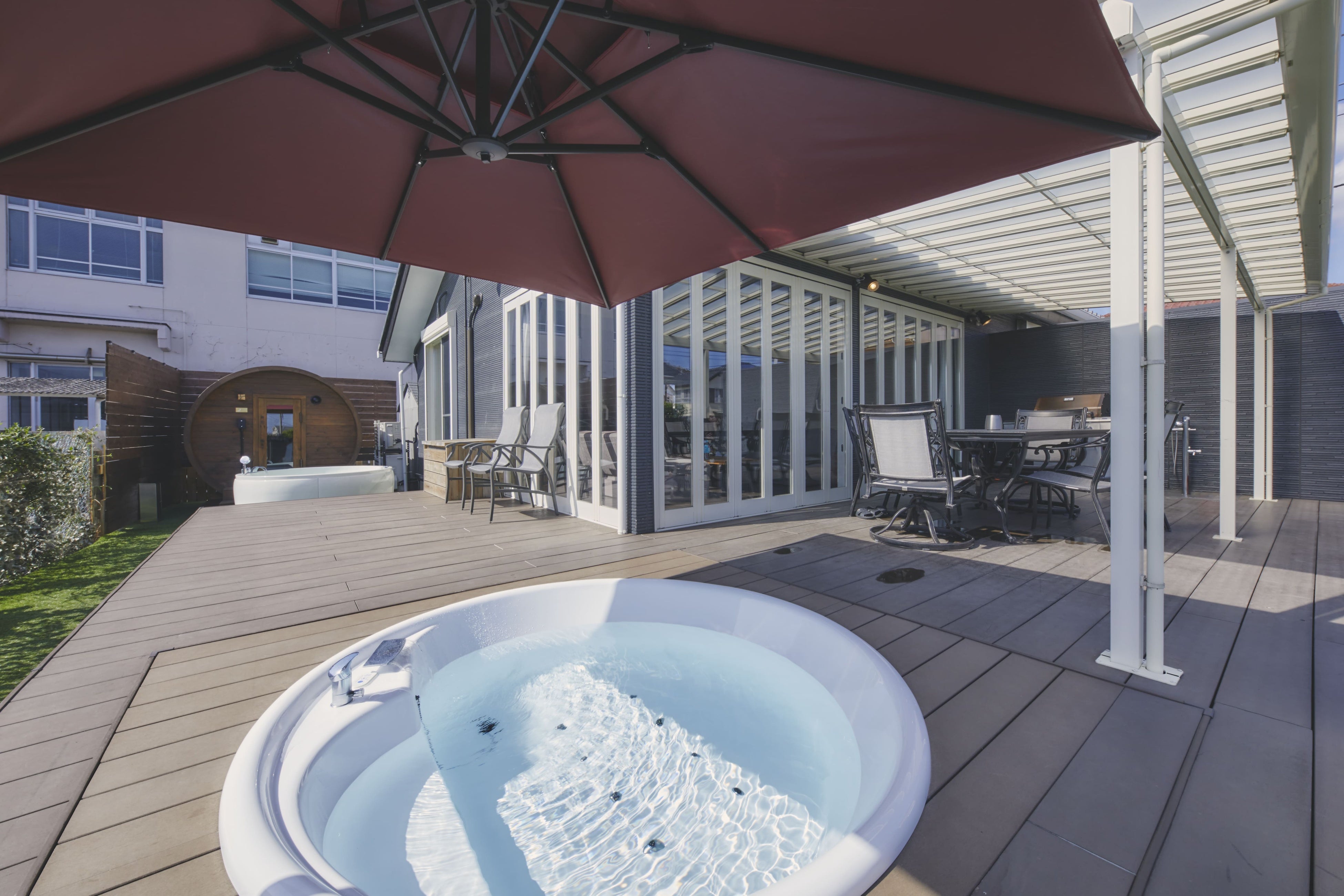 今回プライベートサウナを設置した「K HOUSE」では最大10名の宿泊者が宿泊可能な施設にプライベートサウナと2台のジャグジー、BBQグリル、ドッグラン可能な庭付きとなっております。都心から車で70分という距離で、プライベートなリゾート空間を家族や友人、カップル同士で楽しむことが出来ます。