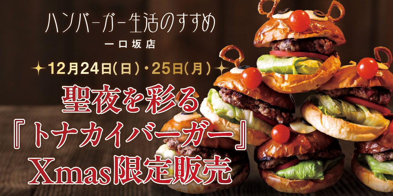 合同会社Bifrost(本社:愛知県名古屋市千種区末盛通3-30-202、代表社員:関根 裕治)が運営する「ハンバーガー生活のすすめ 一口坂店」(住所:東京都千代田区九段南3-9-11B1F、TEL:03-5357-1197)では、23年12月24日(日)・25日(月)のクリスマス限定メニューとして『トナカイバーガー』を販売いたします。