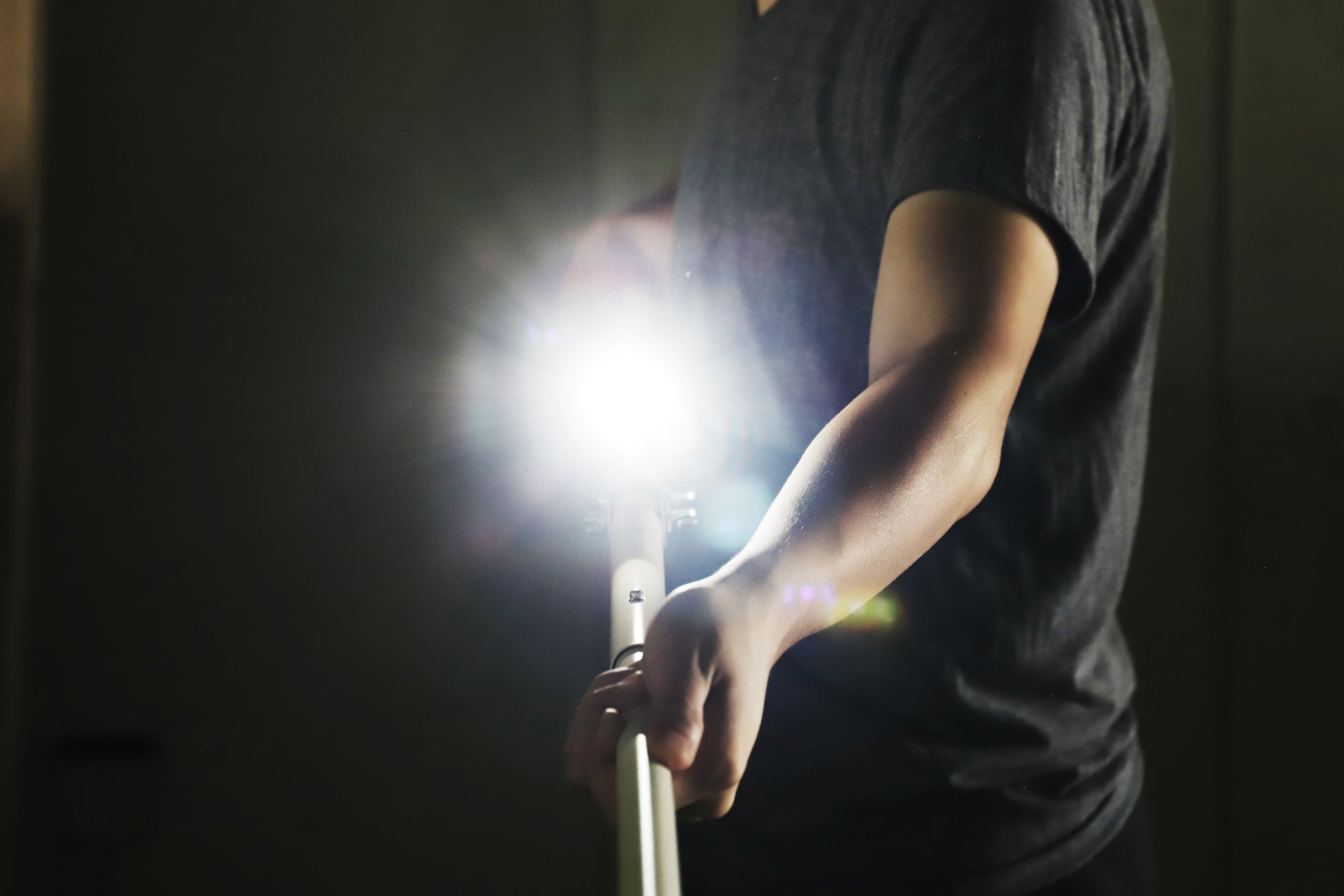 ハイビームさすまたは上記の通り、「攻撃」ではなく「防御」に特化したさすまたです。強力なライトによって相手の視界を大幅に奪うことが可能です。夜間では、使用者側は相手に狙いをつけやすくなり、反対に相手側はさすまた使用者の姿が見えにくくなります。一般的な腕の長さでは届かない位置にライトを装備しているため、奪われて反撃を食らう心配も少なくなっております。光という触れることのできない方法で制圧のアシストをする点が大きな特徴と言えます。