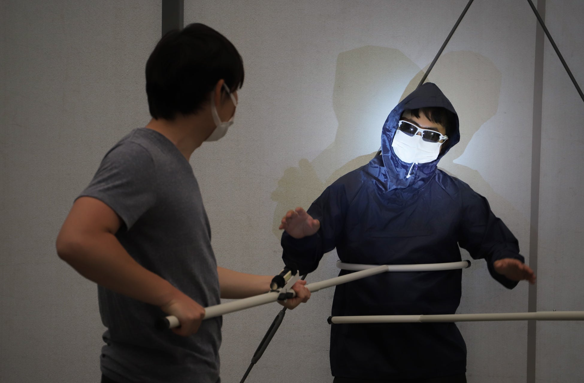 強力ライトで相手をひるませ、さすまたによる押さえつけをアシスト。使用者の姿を確認しづらくし、相手をかく乱します。