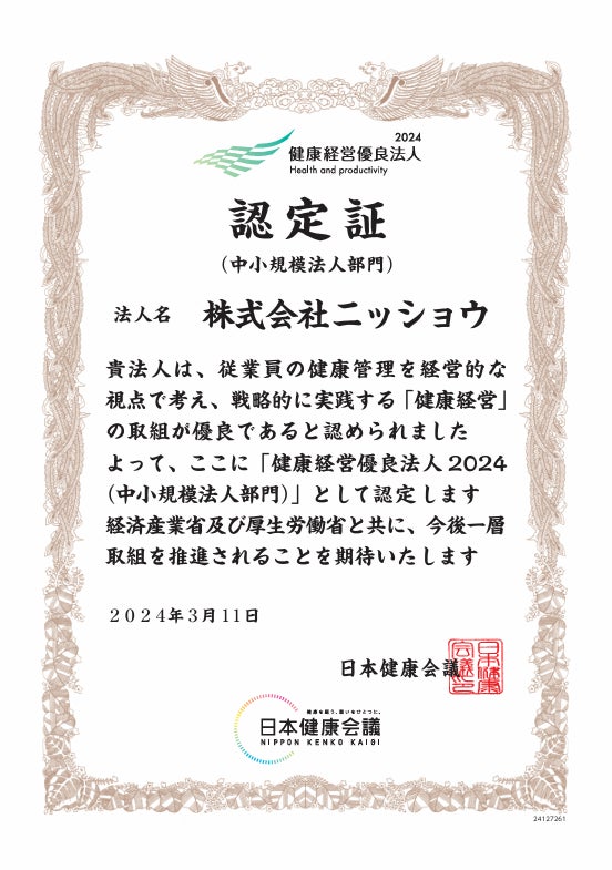 急速な少子高齢化社会を迎え、企業経営に於いても人材採用難や定年延長などこれまでとは違った新たな時代の変化への対応を求められる様になりましたが、株式会社ニッショウに於いては、その対応の一環として『健康経営』を推進しております。
