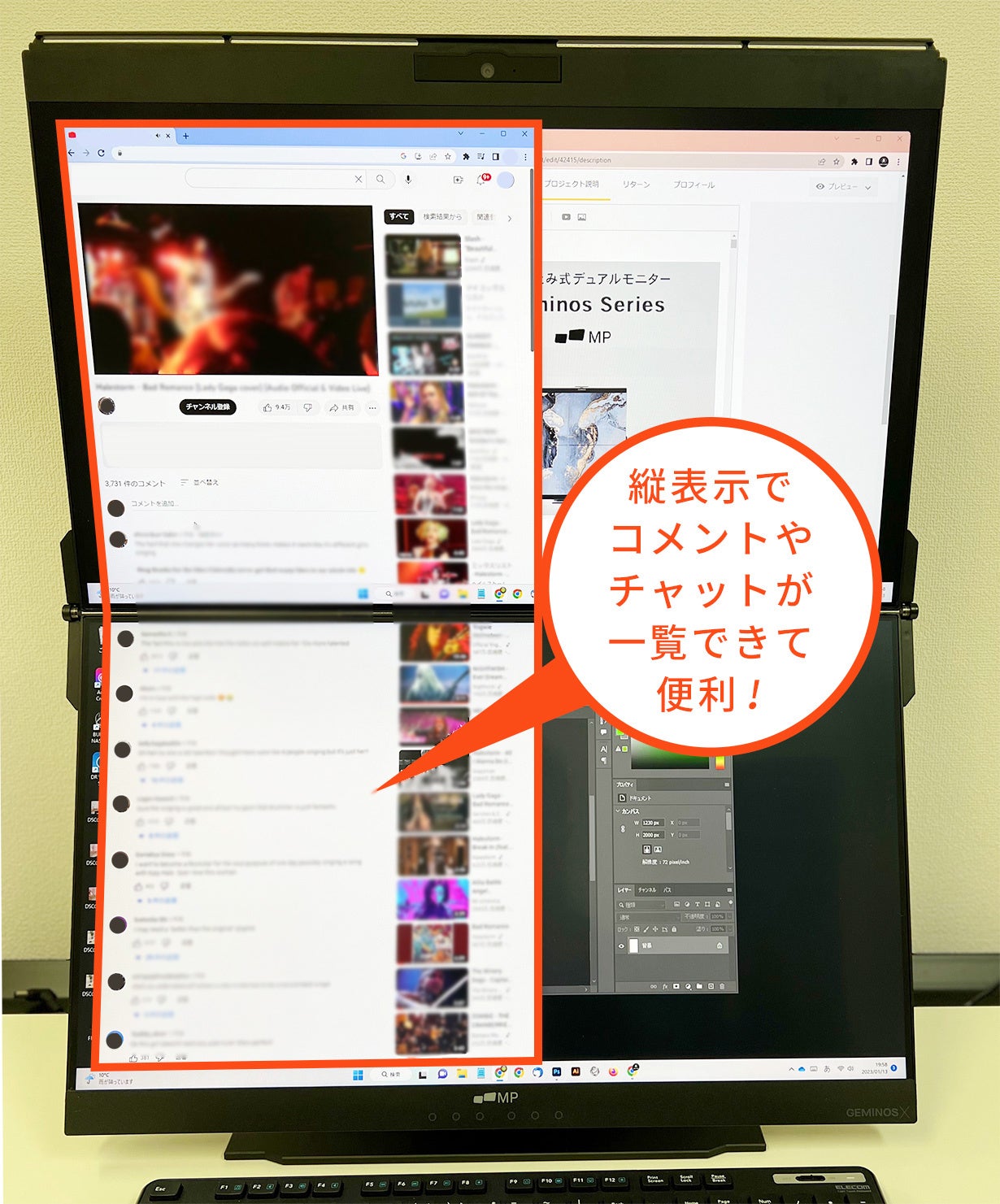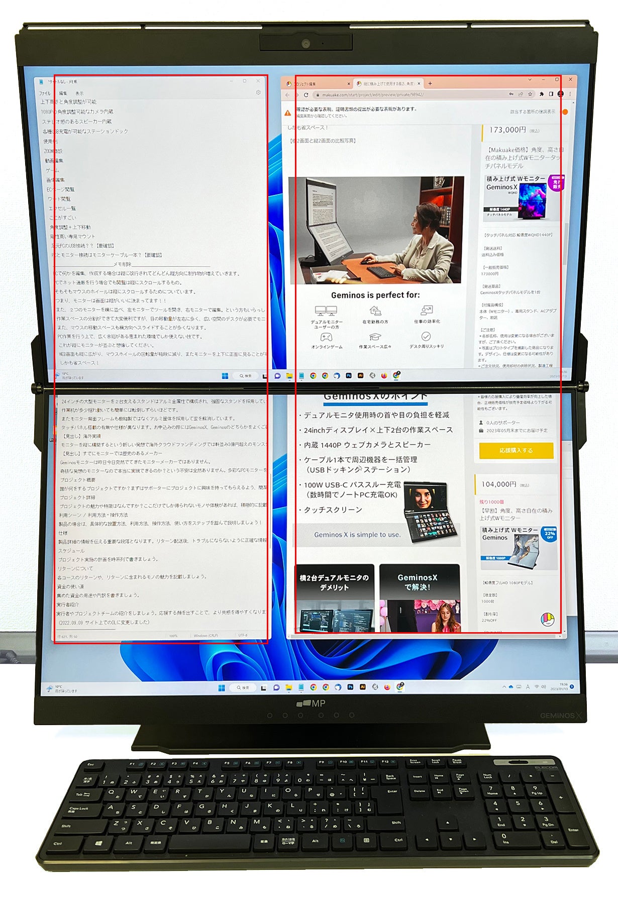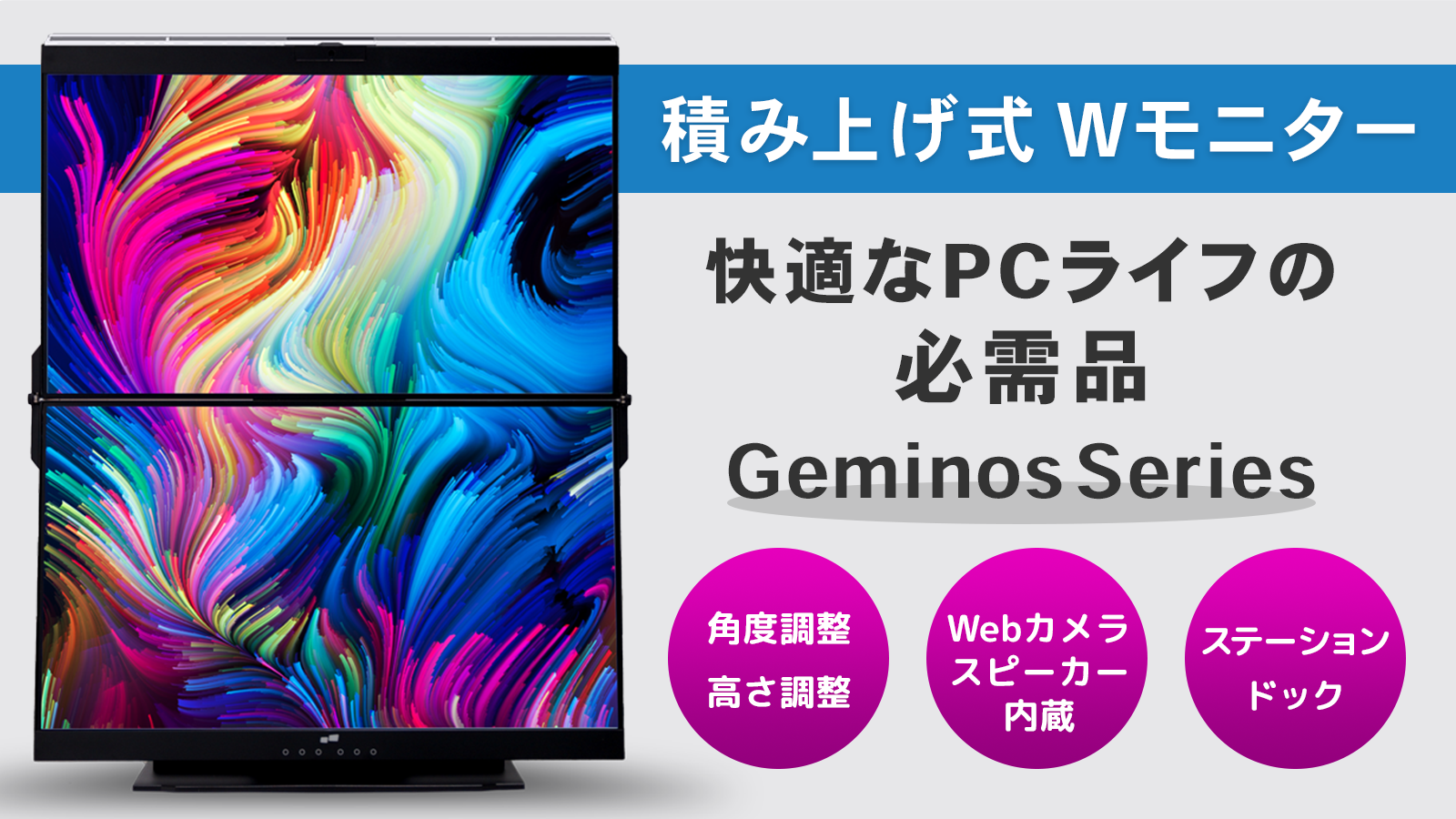 ECサイト、編集画面を縦に有効表示。積み上げ式のWモニター GeminosモニターをMakuake応援購入にて先行販売開始