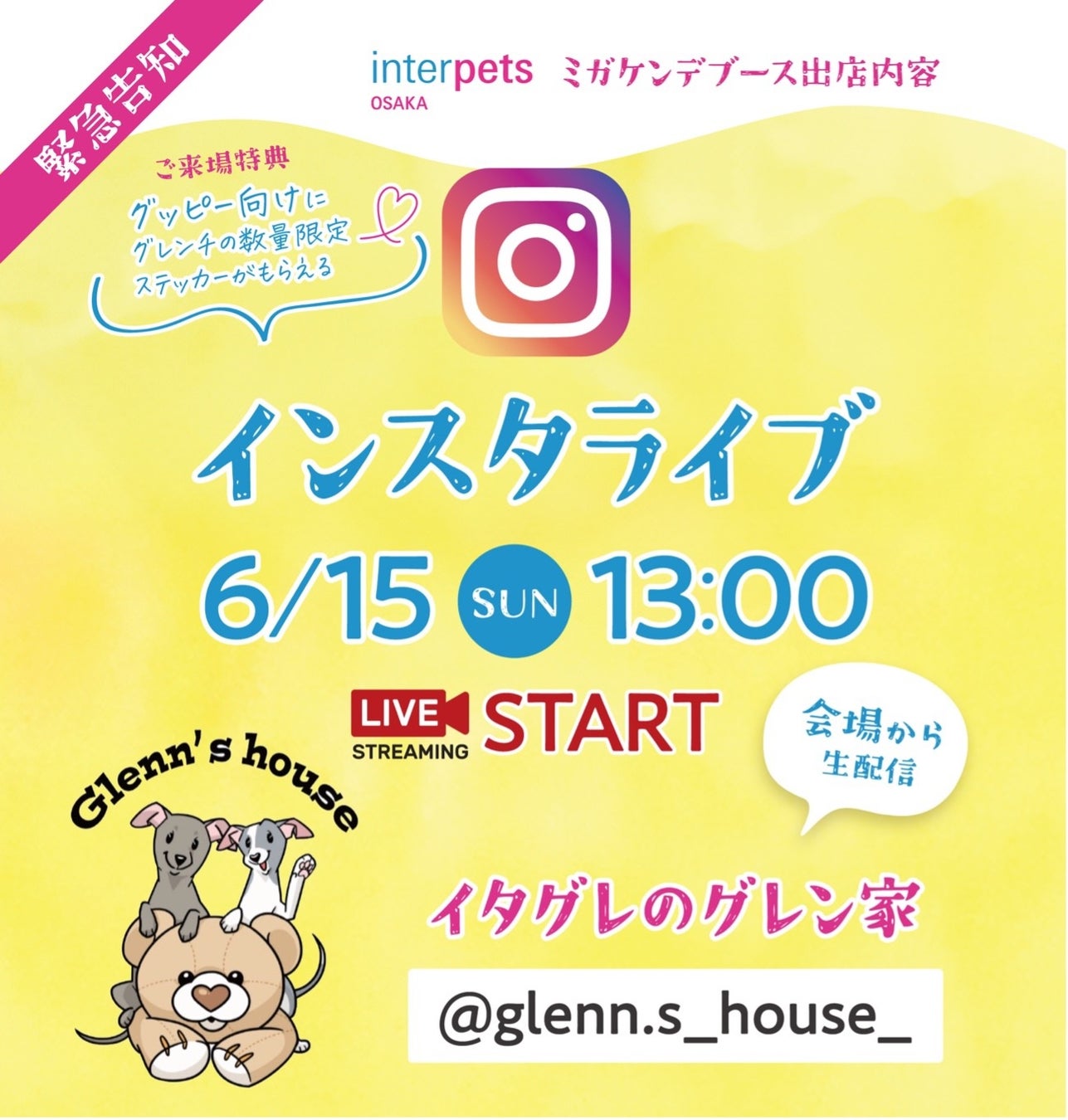 6月15日(土)13:00〜は、Instagramで人気の「イタグレのグレン家」(@glenn.s\_house\_)が来店。