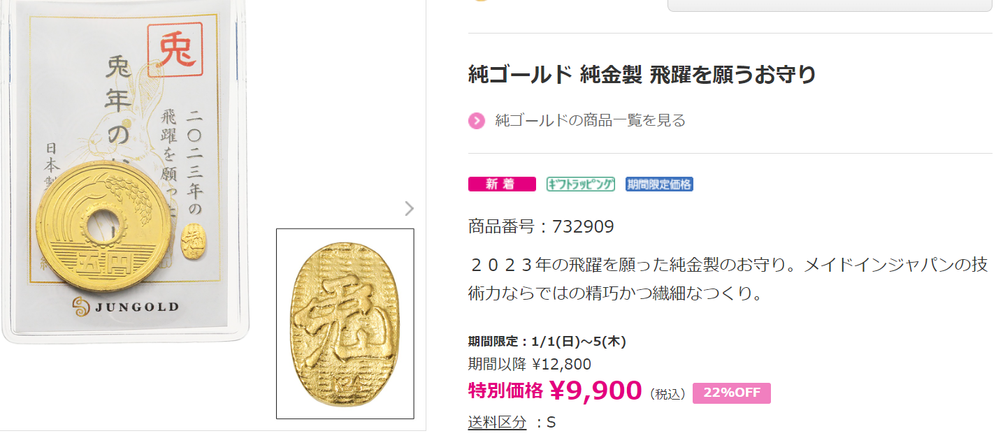 【純金で心躍る体験】「純金製 飛躍を願う兎年のお守り」が「ショップチャンネル」期間限定価格で販売中。1月5日まで