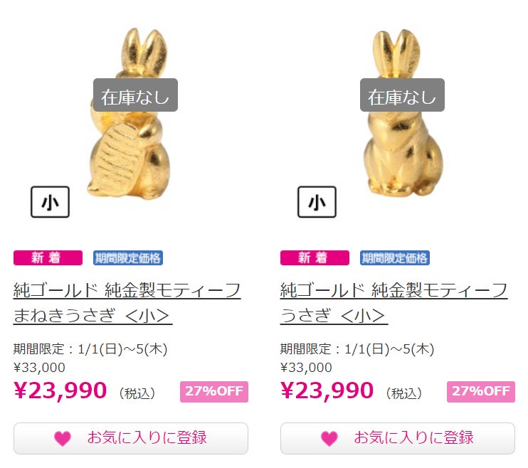 JUNGOLD(純ゴールド)元旦デビュー、すでに完売商品も