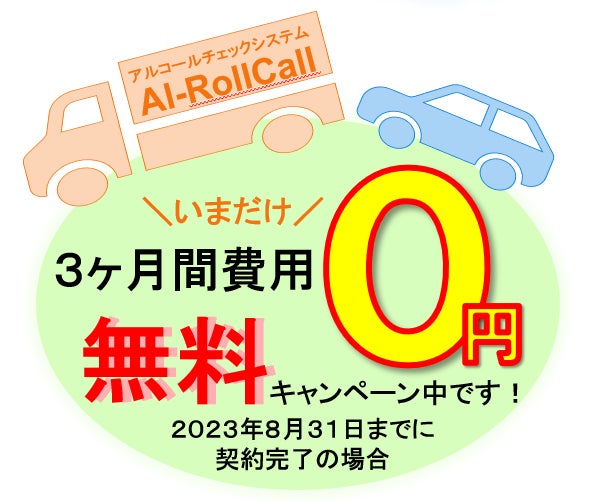 ドライバーのアルコール検査業務のDX化を推進する管理システム「Al-RollCall」が、今だけ3ヶ月間費用無料キャンペーン中!