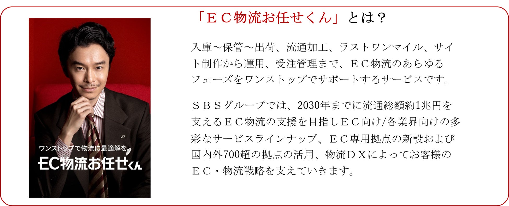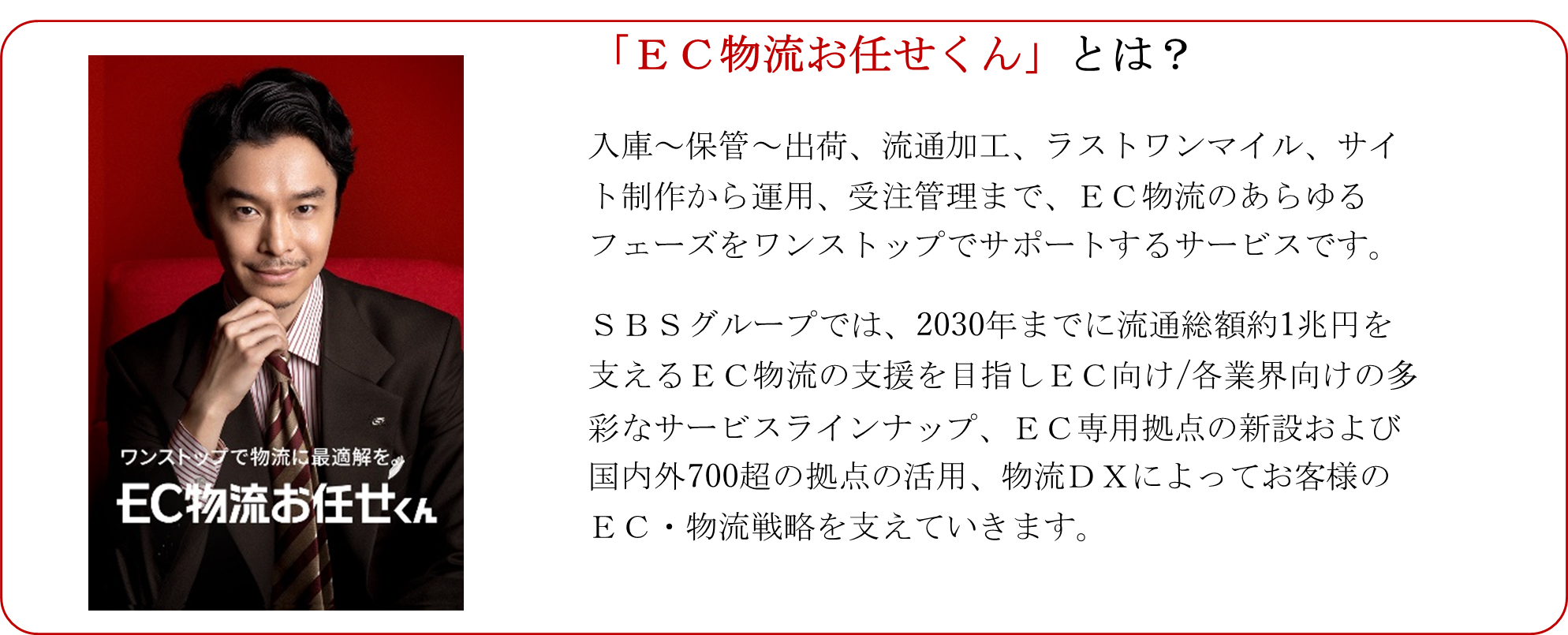 急成長するEC市場において、EC事業者は競争激化、物量波動、在庫最適化、配送コスト増、人手不足など数多くの経営課題に直面しています。SBSグループは、これらの課題を解決しEC市場の一層の成長に貢献すべく、3PL事業で培った倉庫管理や配送ノウハウ、さらにLogistics Technology(以下、LT)を駆使した物流DXを組み合わせ、業界別に最適化されたプラットフォーム「EC物流お任せくん」を2022年12月に発表し、EC物流事業への取り組みを加速しています。
